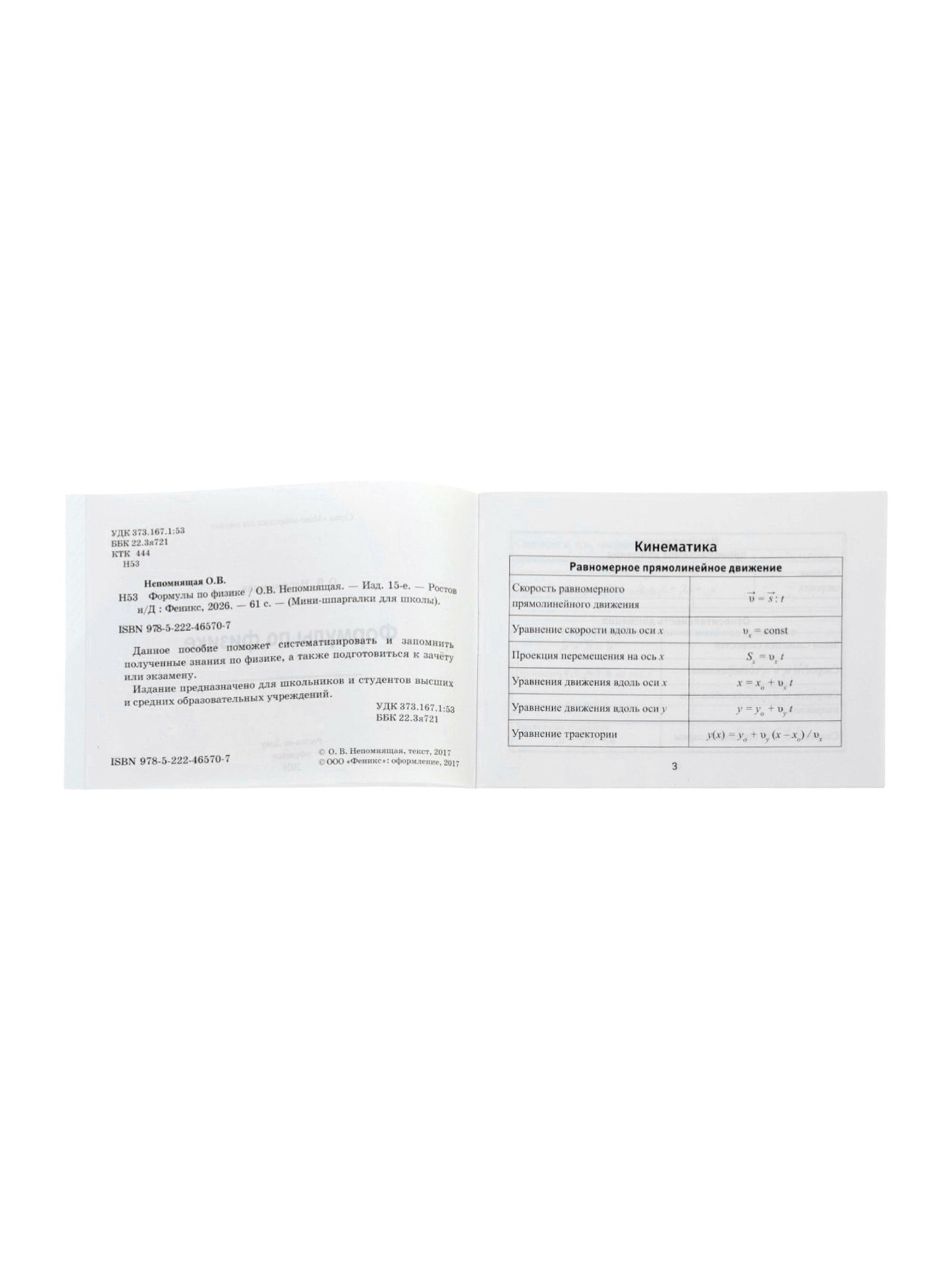 Мини - шпаргалка "Формулы по физике", Непомнящая О.В., 61 стр., Издательство «Феникс», Россия