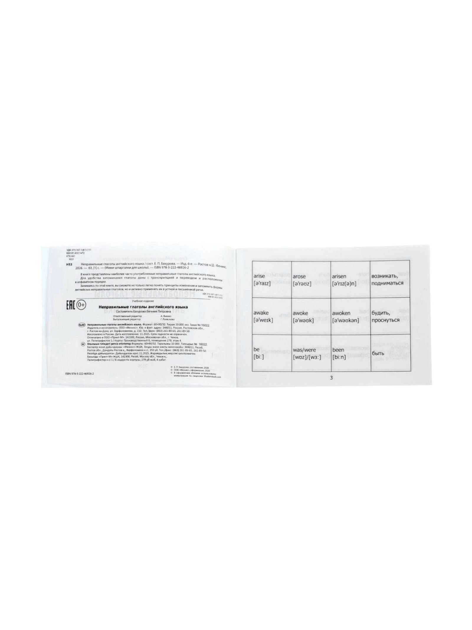 Мини - шпаргалка "Неправильные глаголы английского языка", Бахурова Е.П., 63 стр., Издательство «Феникс», Россия