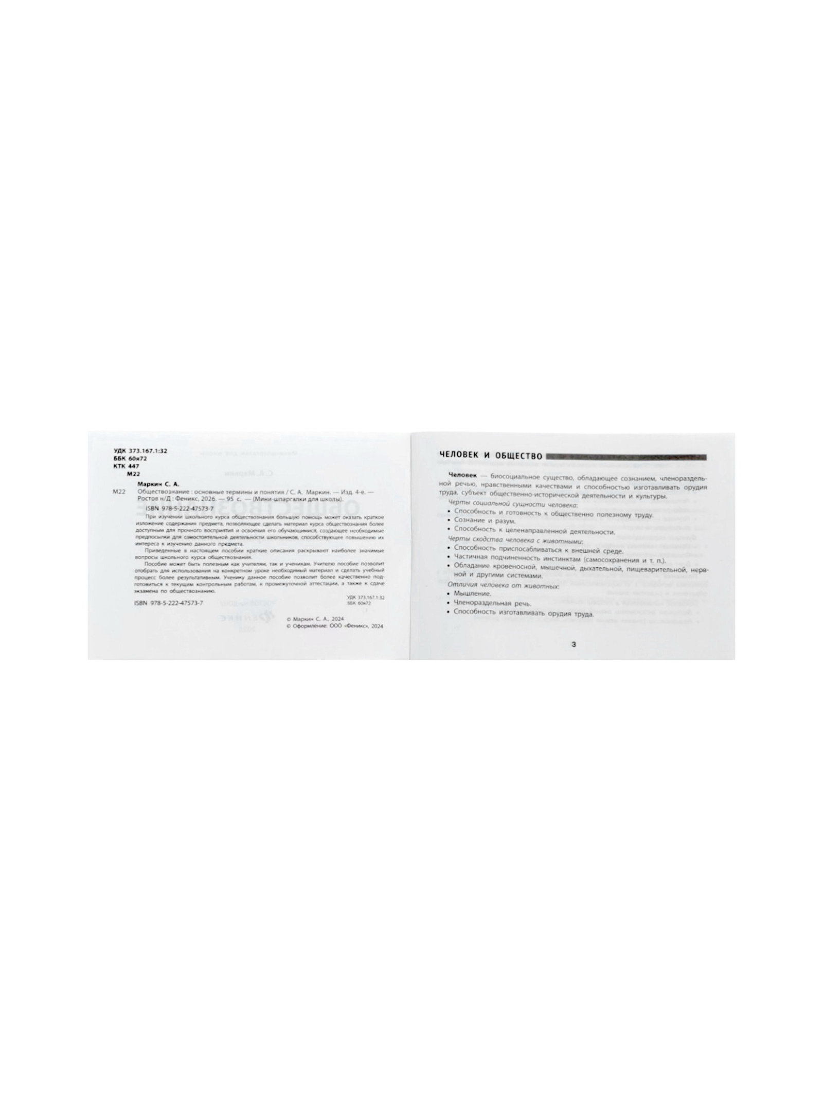 Мини - шпаргалка "Обществознание, основные термины и понятия", Маркин С.А., 95 стр., Издательство «Феникс», Россия