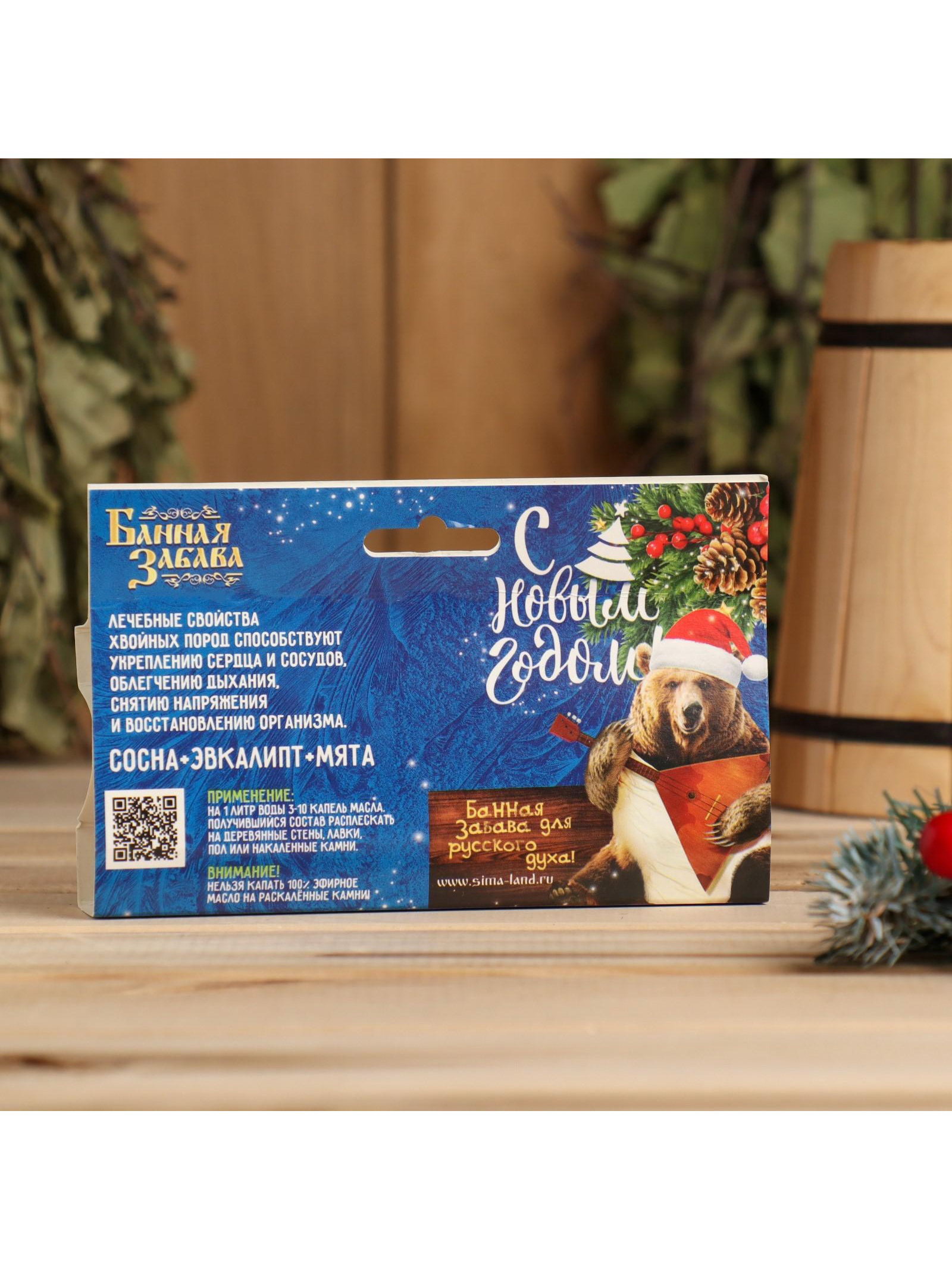 Новогодний набор эфирных масел "С Новым годом! С легким паром!", сосна, эвкалипт и мята, 3 шт. по 15 мл, 15 мл., Банная забава, Россия