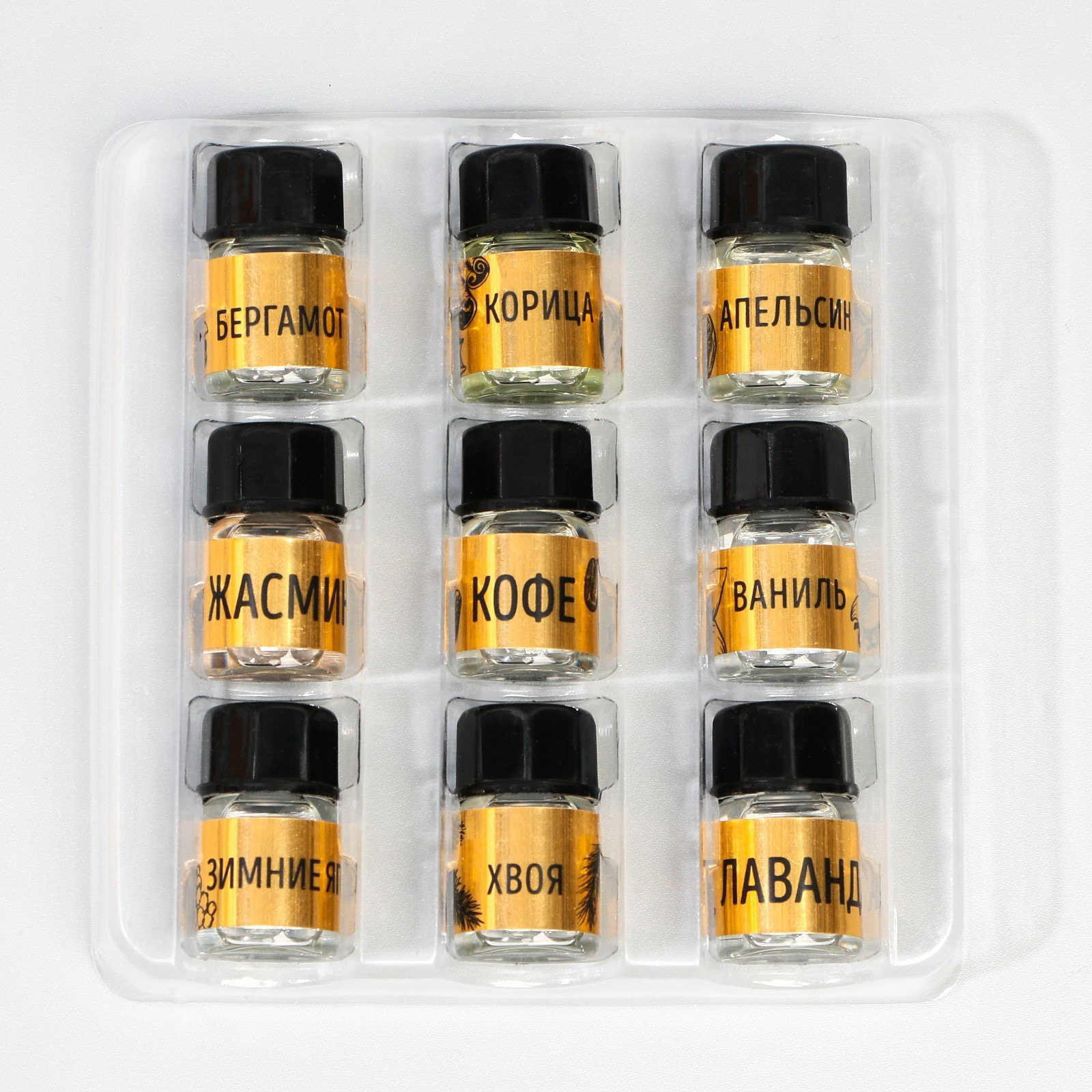 Набор эфирных масел "Счастливого Нового года", набор 9 шт, 3 мл, 1.5x1.5x2.5 см., Сима-ленд, Китай