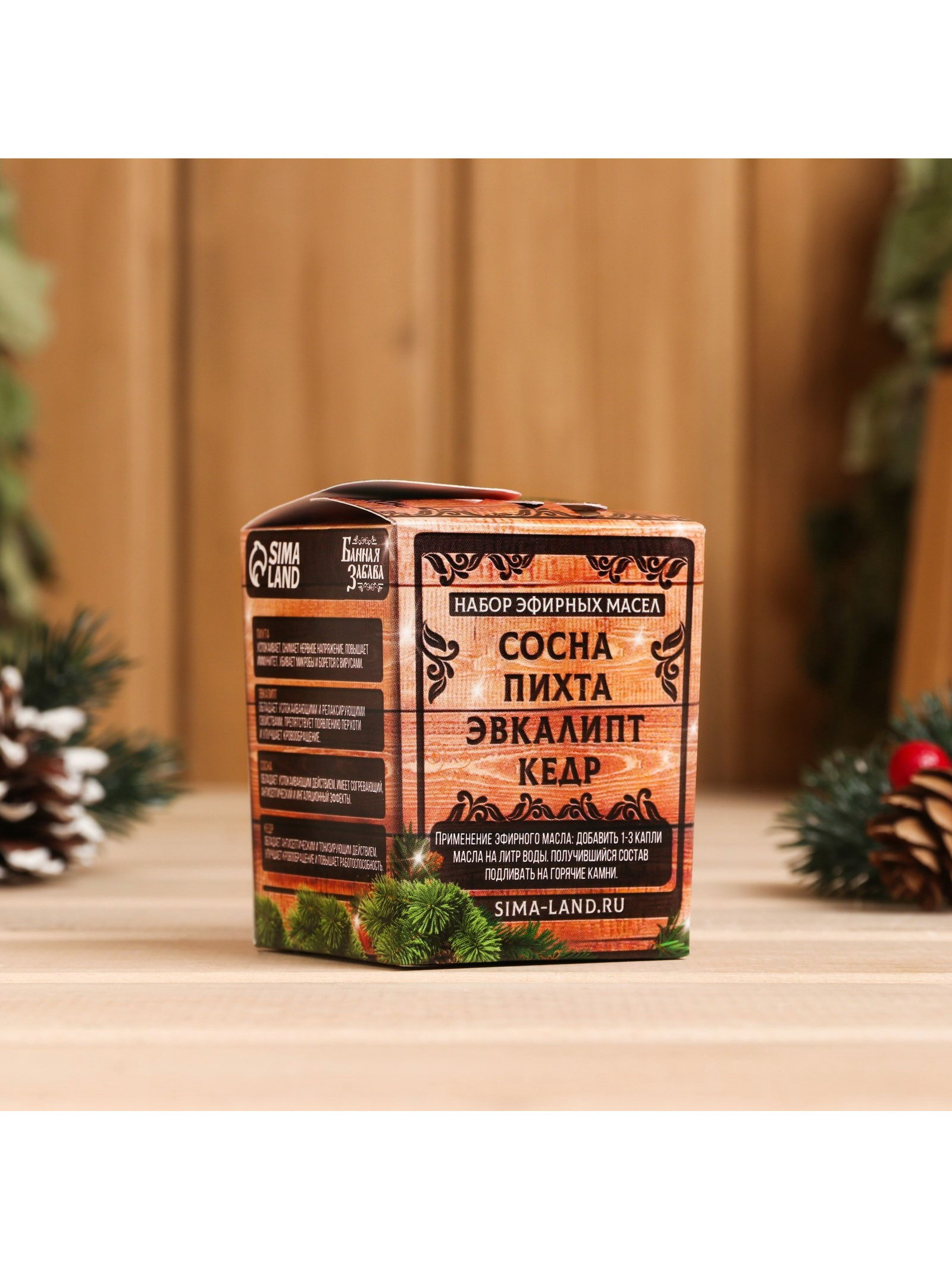 Аромат: Кедр, Пихта, Сосна, Эвкалипт Размер упаковки: 5 x 5 x 6.5 см. tnved: 3001909800 Группа ароматов: Древесные Набор: Да Тематика праздника: Новый год Эфирное масло обладает антисептическим, ранозаживляющим, антибактериальным и противогрибковым свойством. Масло успокаивает, снимает раздражение, убирает воспаления и покраснения кожи. Косметическое действие: восстанавливает эластичность кожи. Уменьшает гиперсекрецию жирной кожи, препятствует образованию угревой сыпи. Используется при уходе за волосами для предотвращения выпадения волос и образования перхоти. Масло быстро проникает в дерму, частично в кровоток и все внутренние органы. Поэтому использование эфирного масла превращает тонизирующий массаж в лечебный. Целебное действие: Использование масла поможет избавиться или существенно уменьшить головные боли , устранить головокружения(ванны, растирания, бани, сауны).Оно оказывает губительное действие на вирусы, подавляет развитие микробов и снимает воспаление. Помимо этого, эфирное масло снижает уровень стресса в организме и нормализует сон. Рекомендованные дозы:
