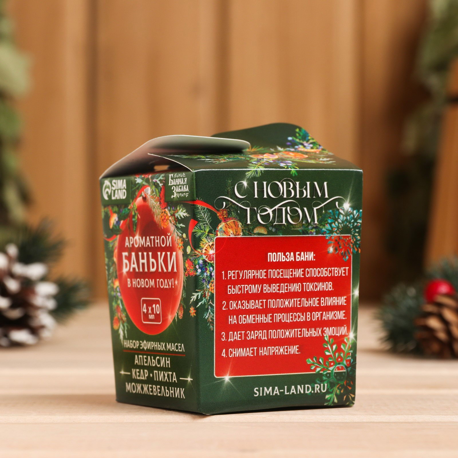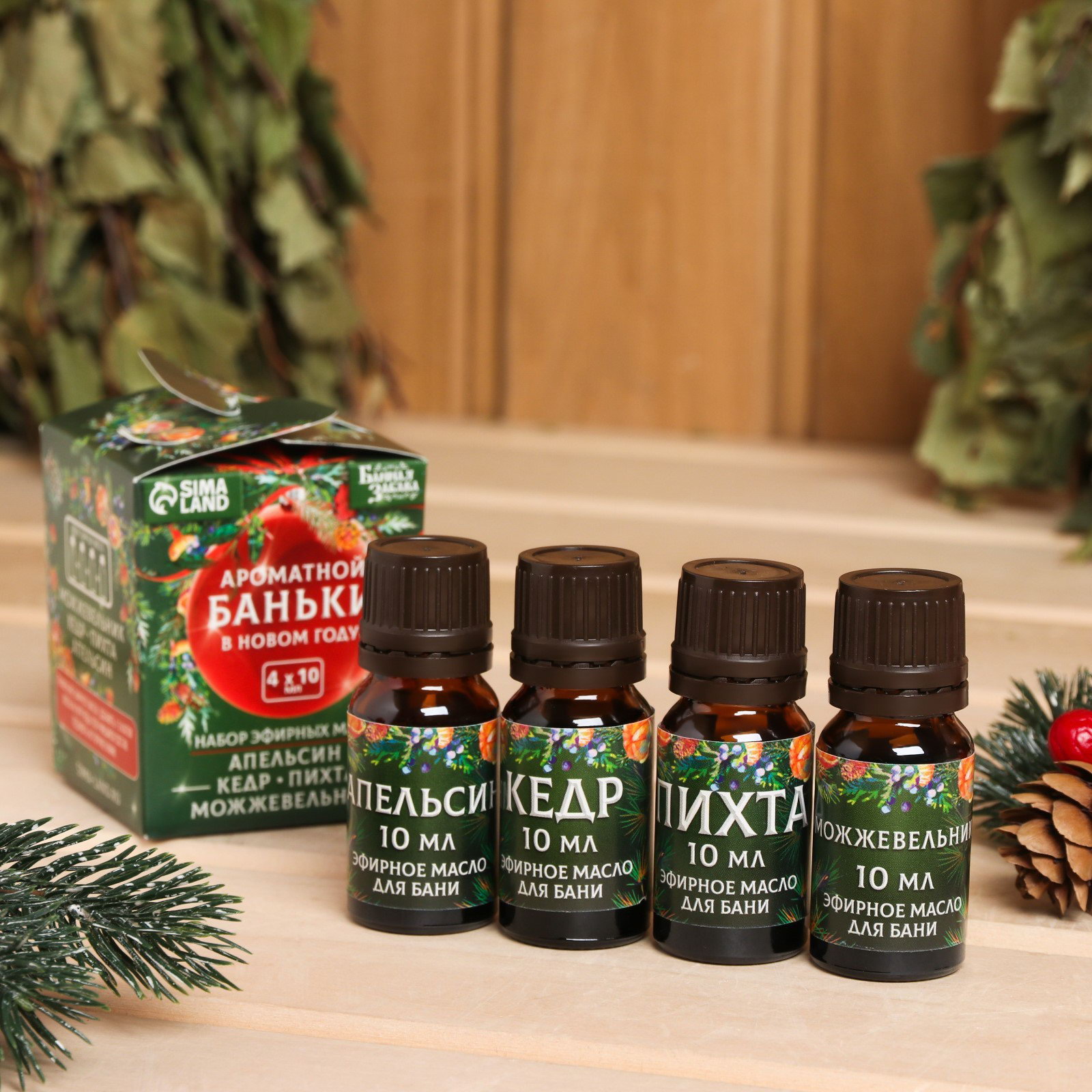 Набор эфирных масел 4 шт по 10 мл"Ароматной баньки", апельсин, кедр, пихта, можжевельник, 10 мл., Банная забава, Россия