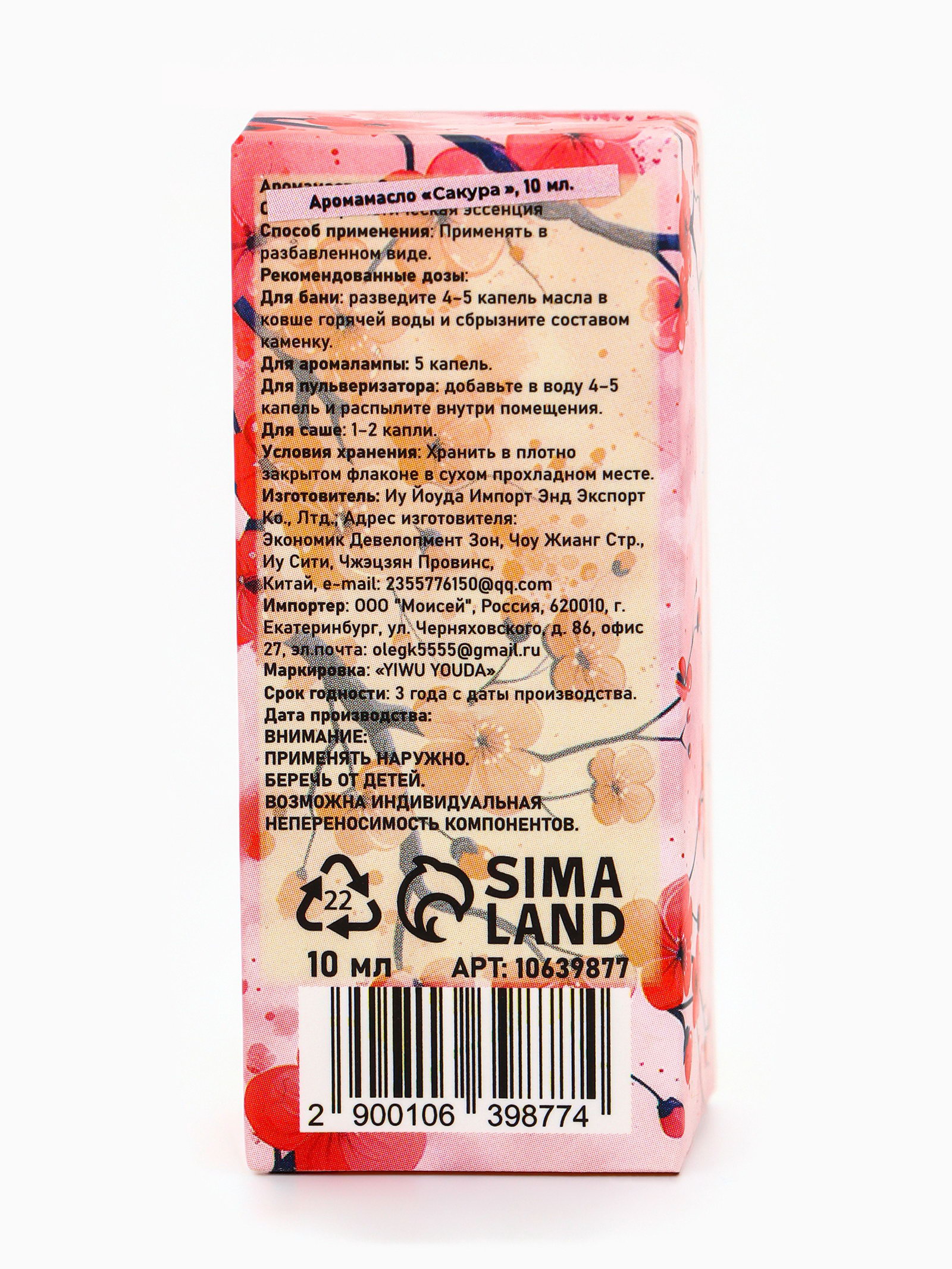 Аромамасло Сакура 10 мл, 3x8x3 см., SB BEAUTY, Китай