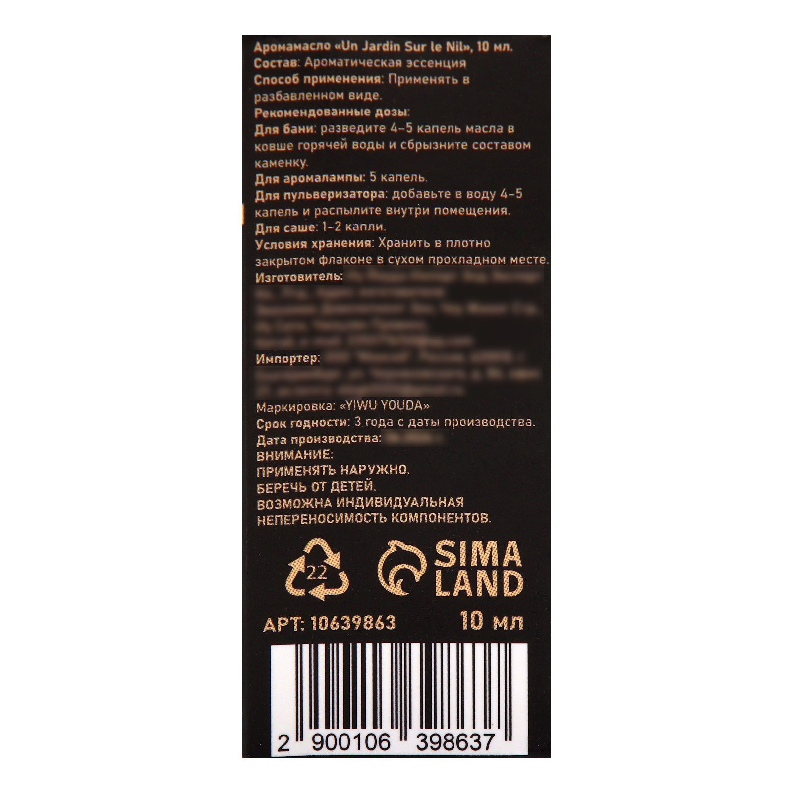 Аромамасло Un Jardin Sur le Nil 10 мл, 3x8x3 см., SB BEAUTY, Китай
