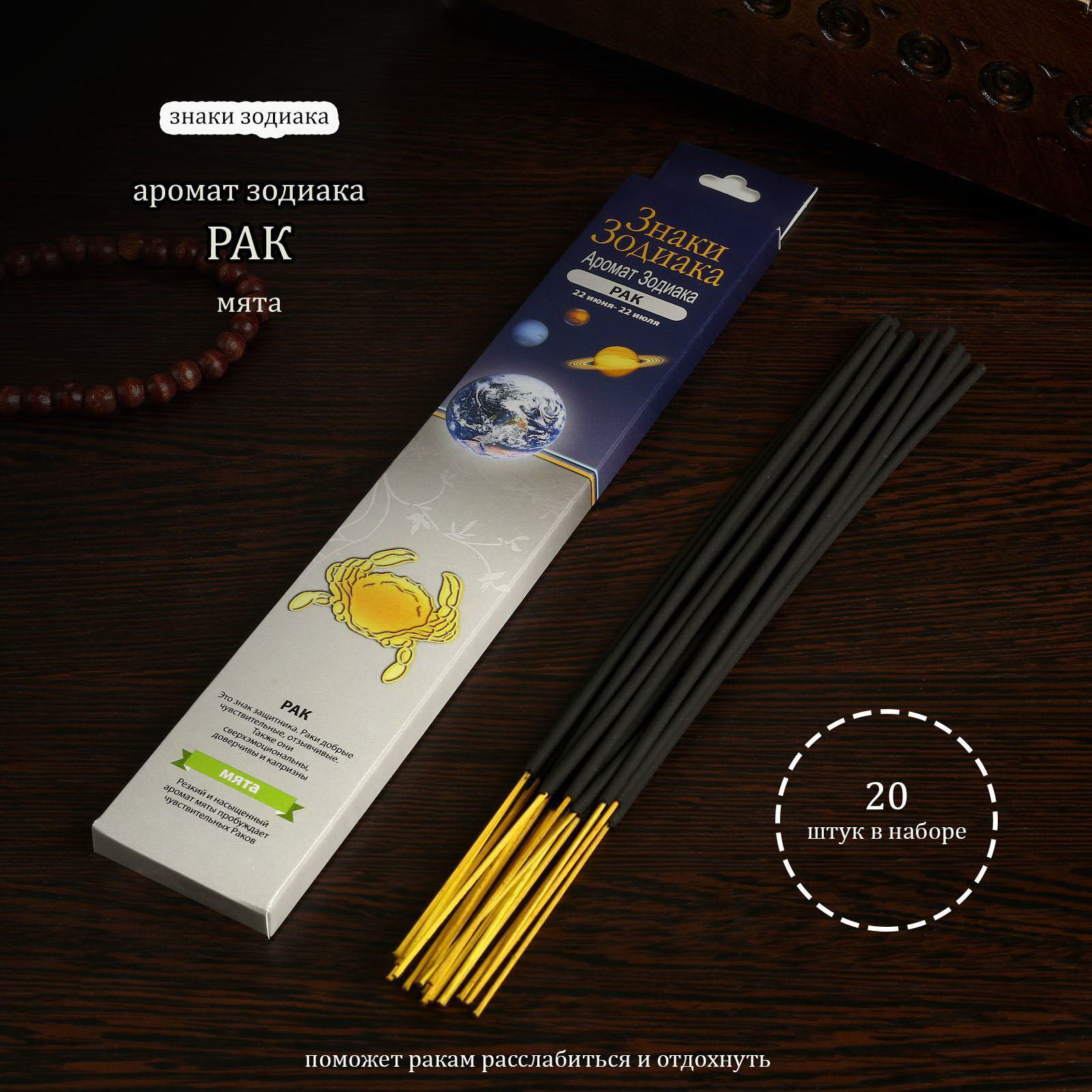 Благовония "Зодиак РАК–мята", 20 палочек в упаковке, Индокитай, Россия