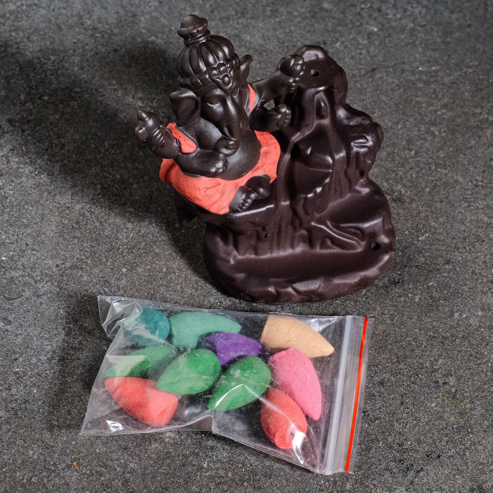 Подставка для благовоний "Ганеша", набор благовоний конусы, стелющийся дым, 12x8 см, 11.5x8 см., TAKE IT EASY, Китай