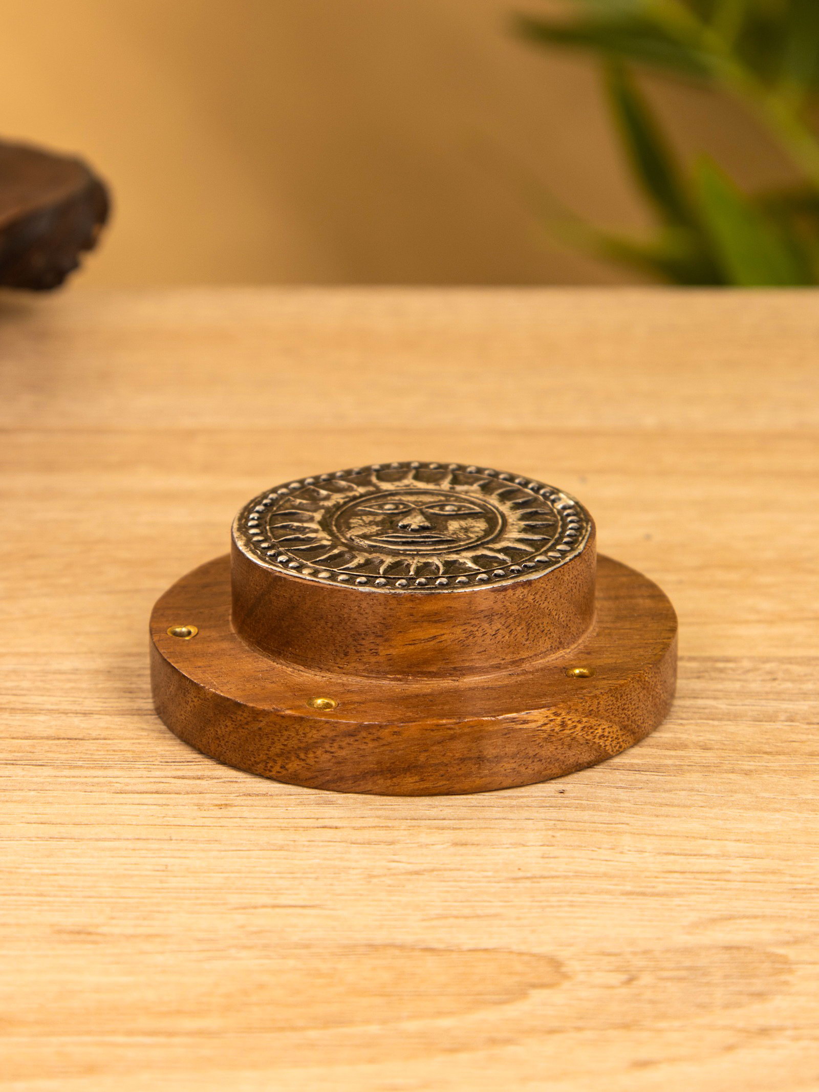 Подставка под благовония "Домовой", 7x7x2.5 см, дерево шишам, 7x7x2.5 см., Индия
