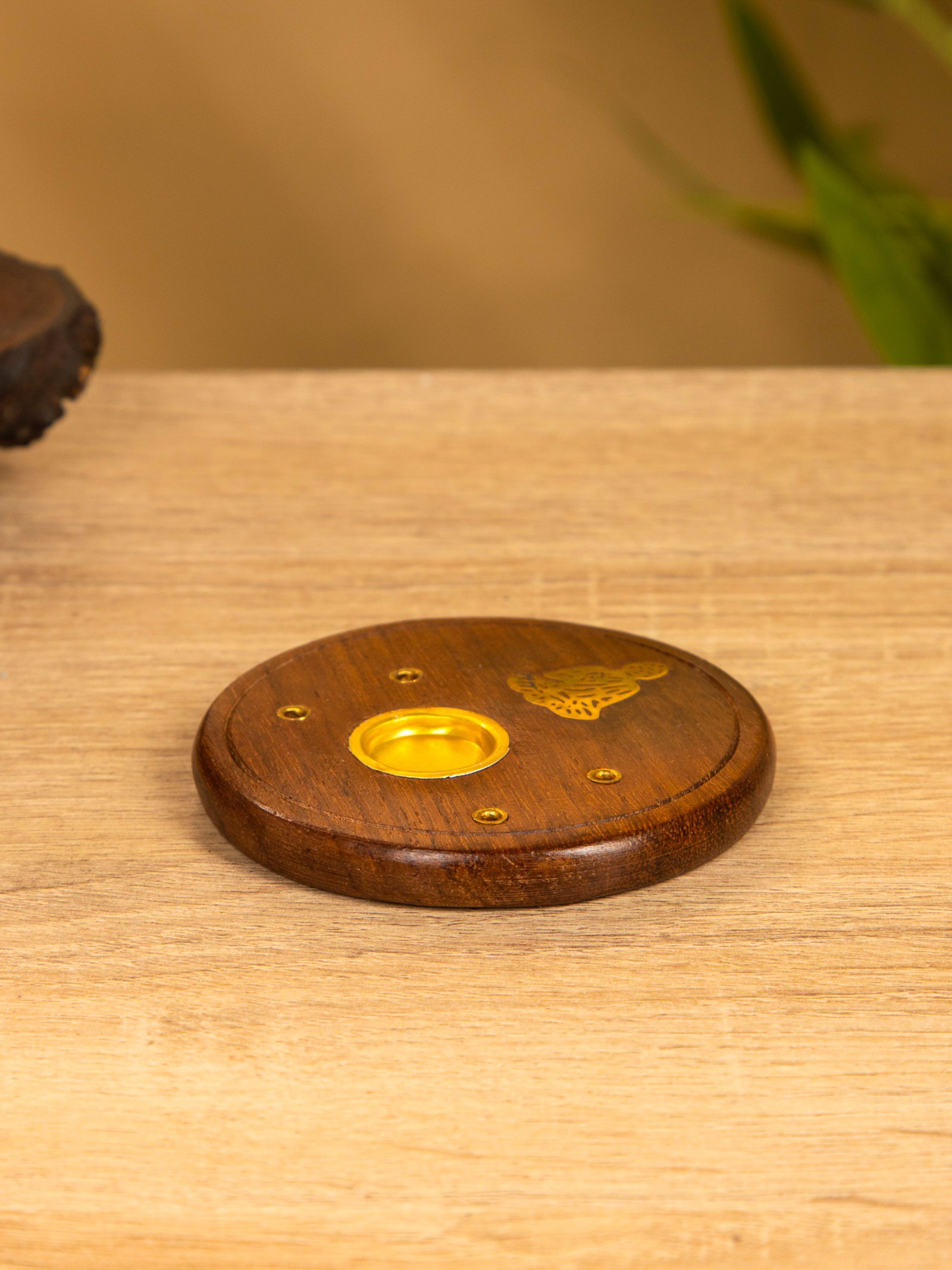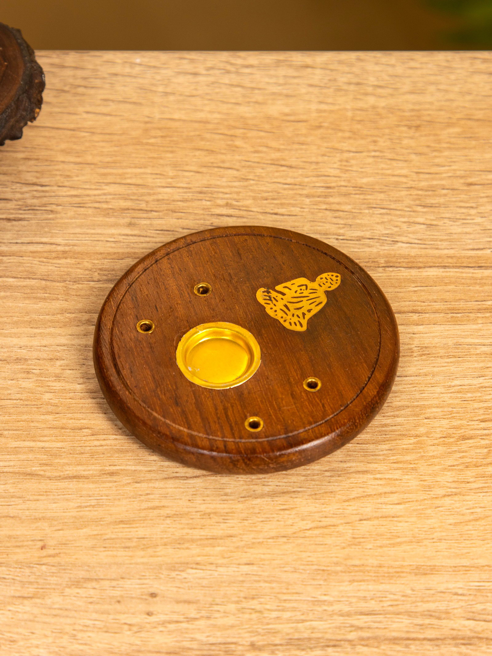 Подставка под благовония "Будда", 7 см, дерево шишам, 7x7x1 см., Индия