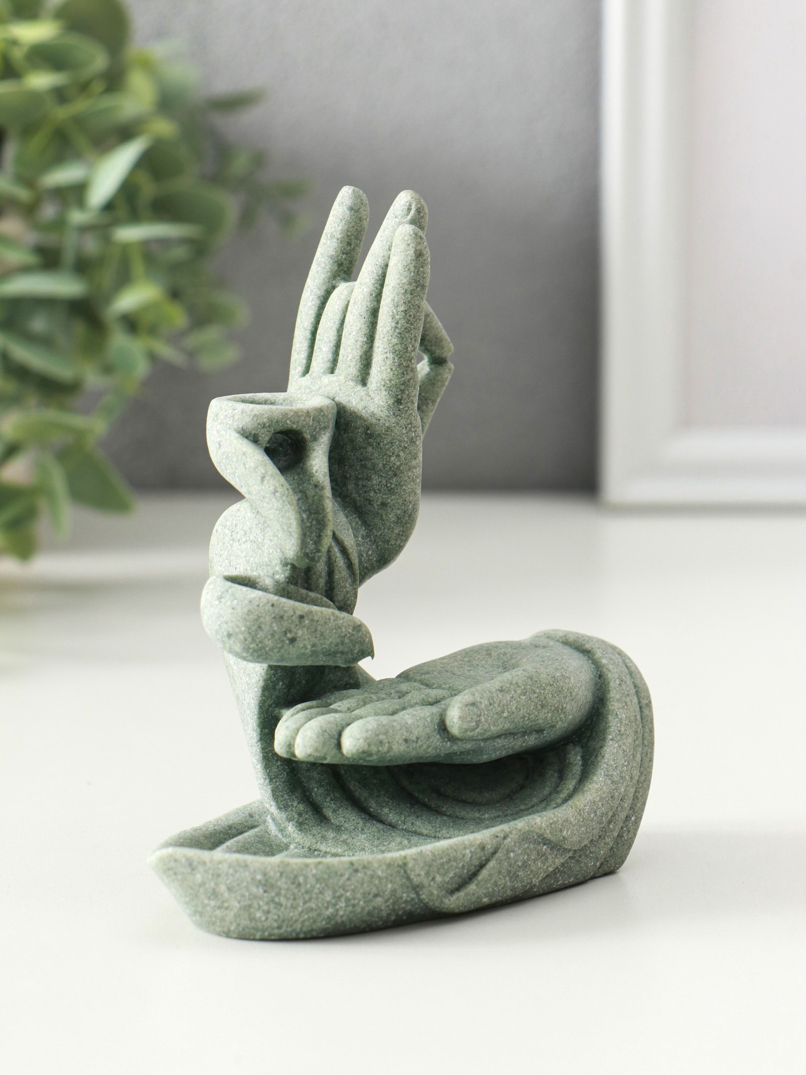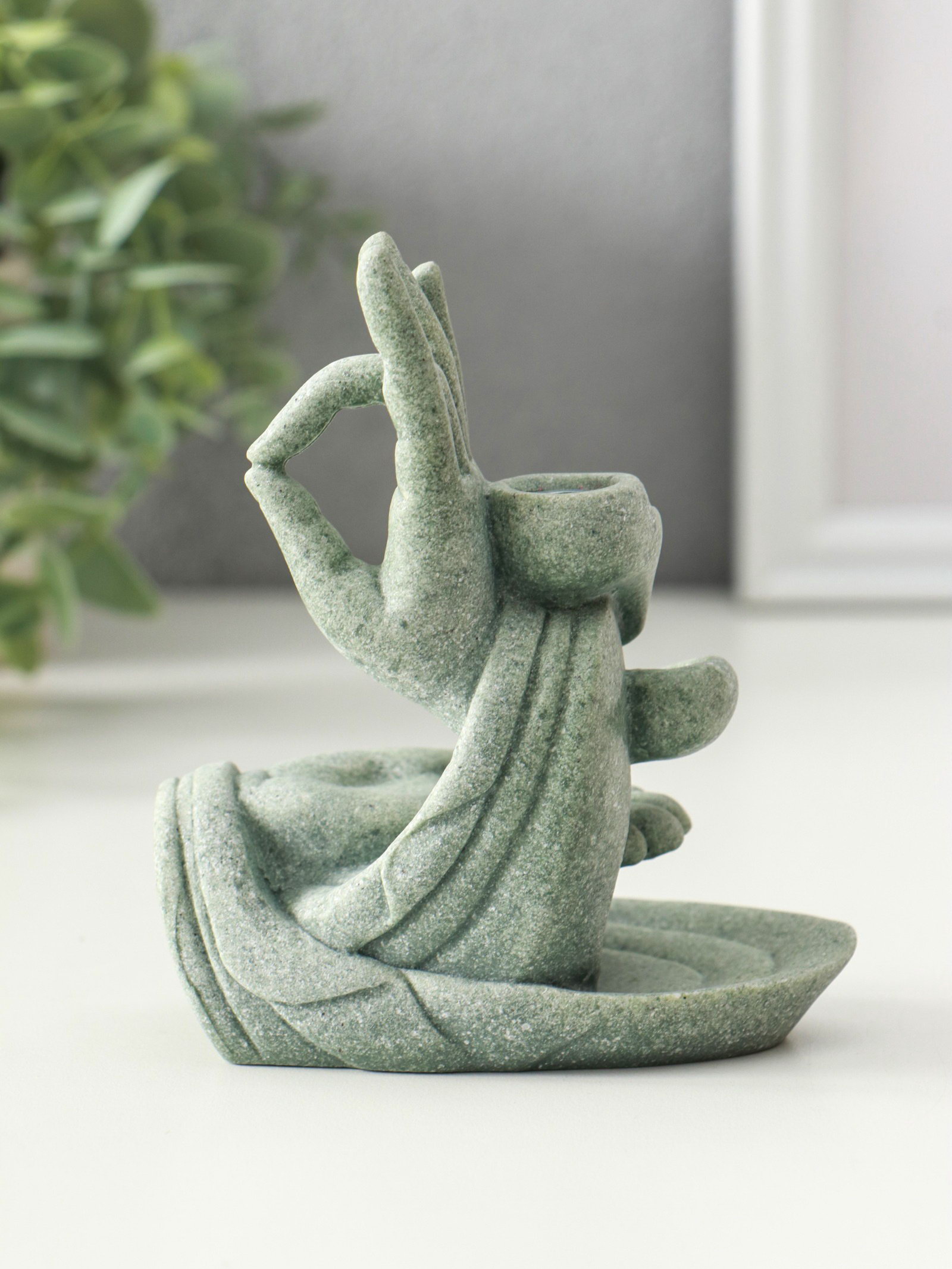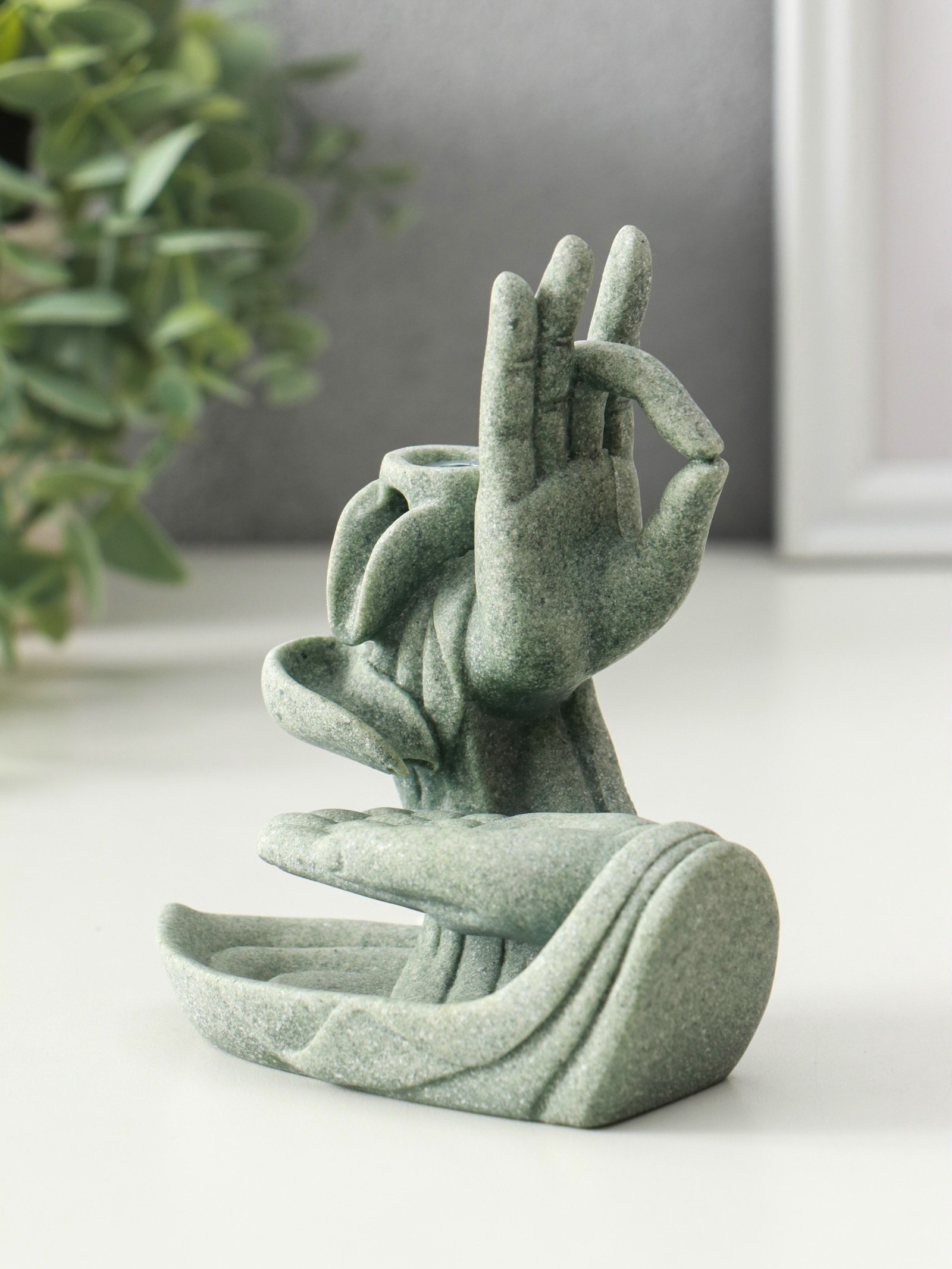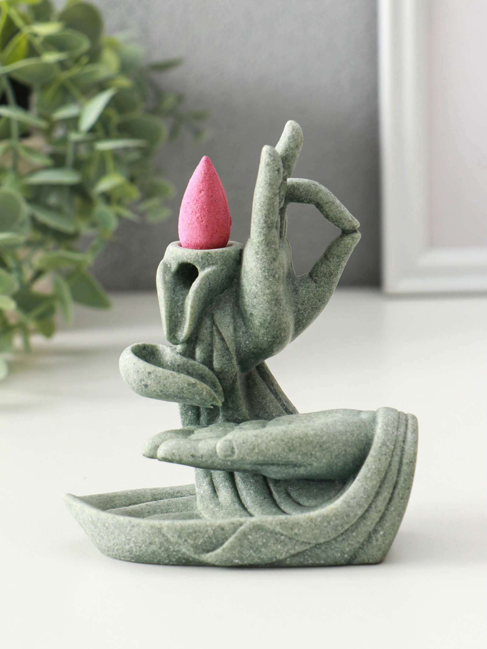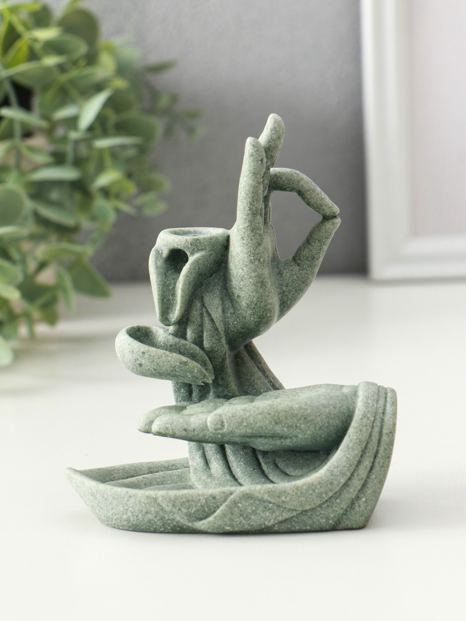 Подставка для благовоний "Мудра Витарка - Колесо учения", песчаник, стелющийся дым, 5.5x10.3x11.5 см, 10.3x5.5x11.5 см., Китай
