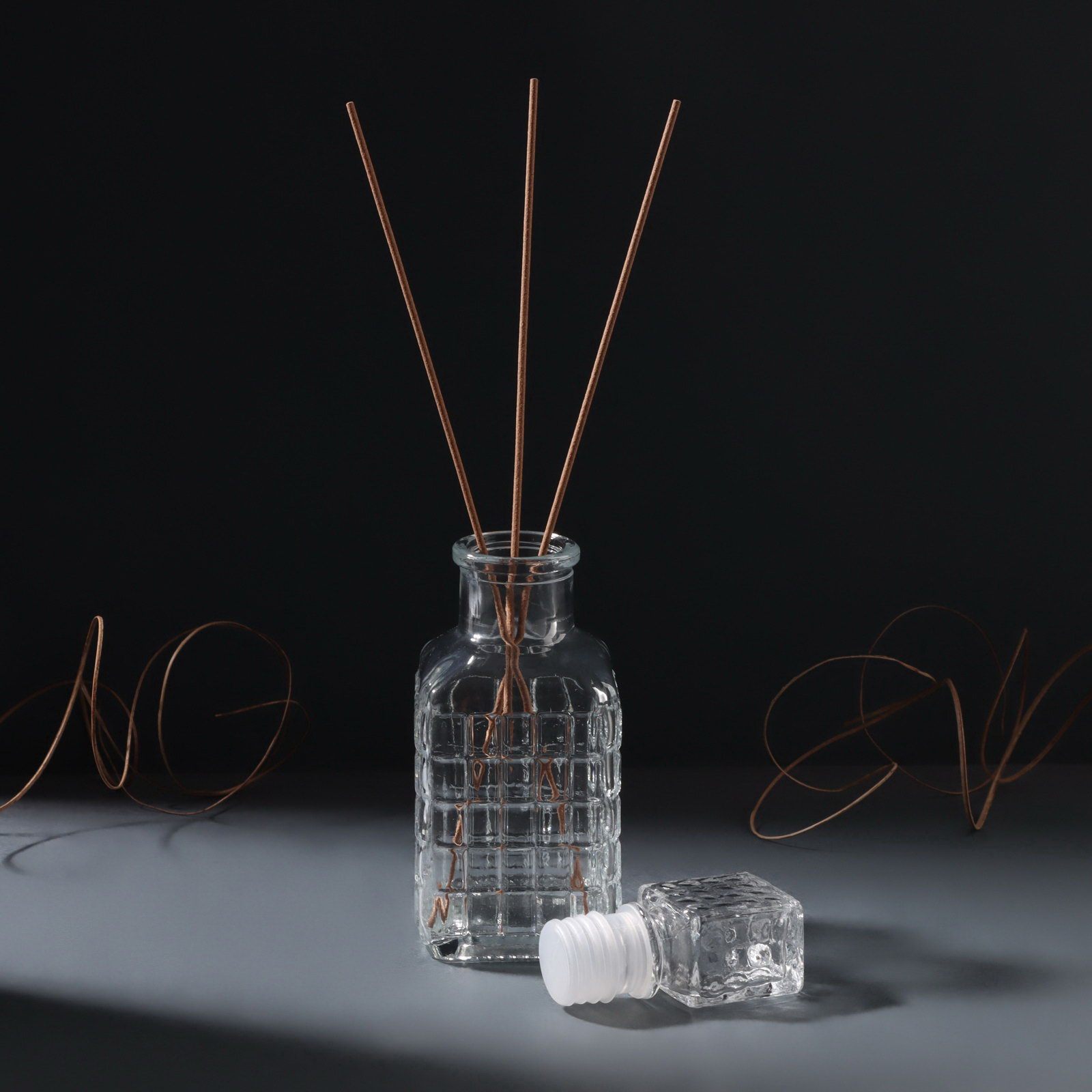 Диффузор для эфирных масел с крышкой "Квадратики" 100 мл прозрачный 4.5х5х13.5 см, 5x4.5x13.5 см., Китай