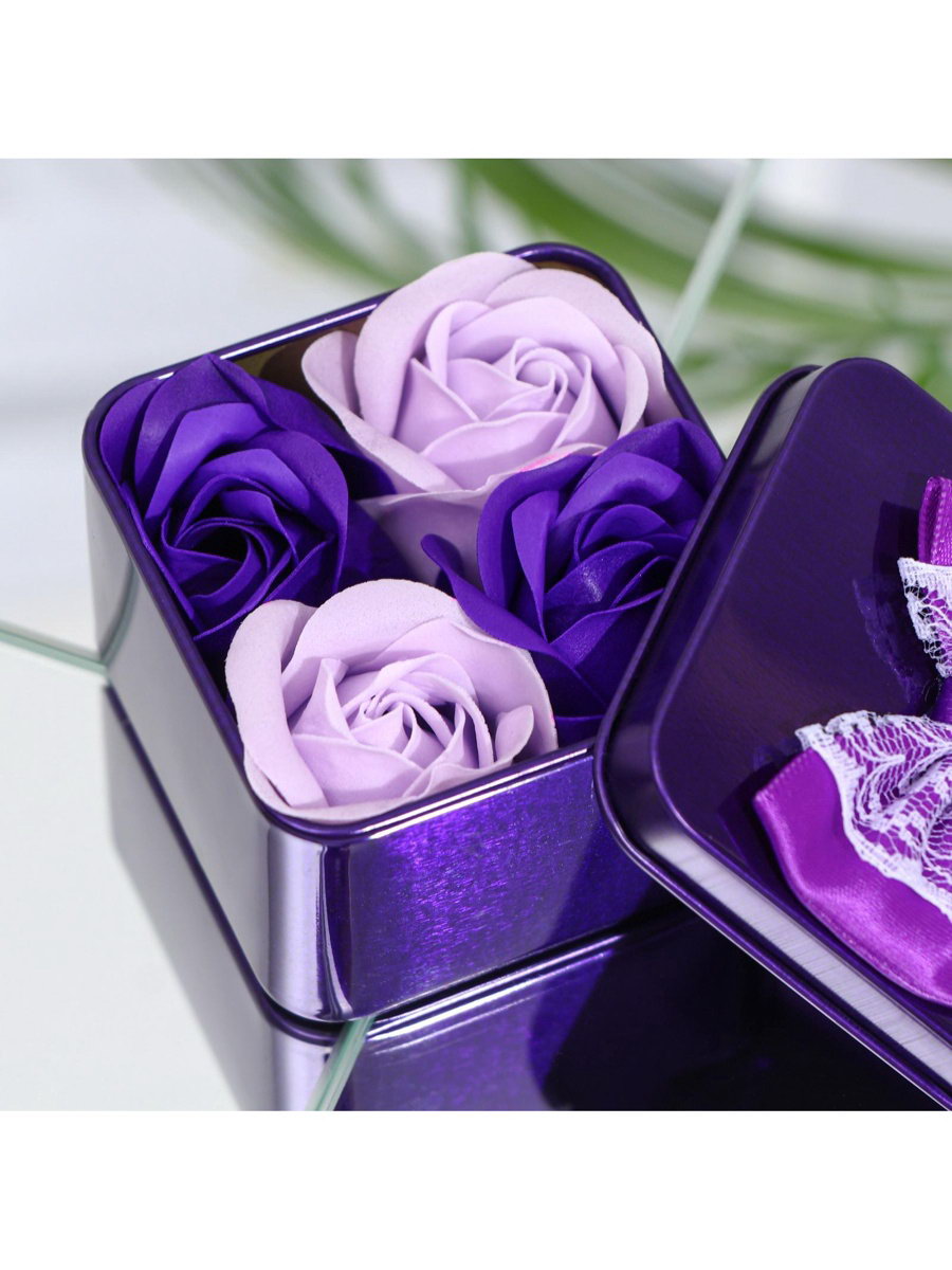 Мыльные розы, фиолетовые и белые, набор 4 шт., 5x10x10 см., SB BEAUTY, Китай