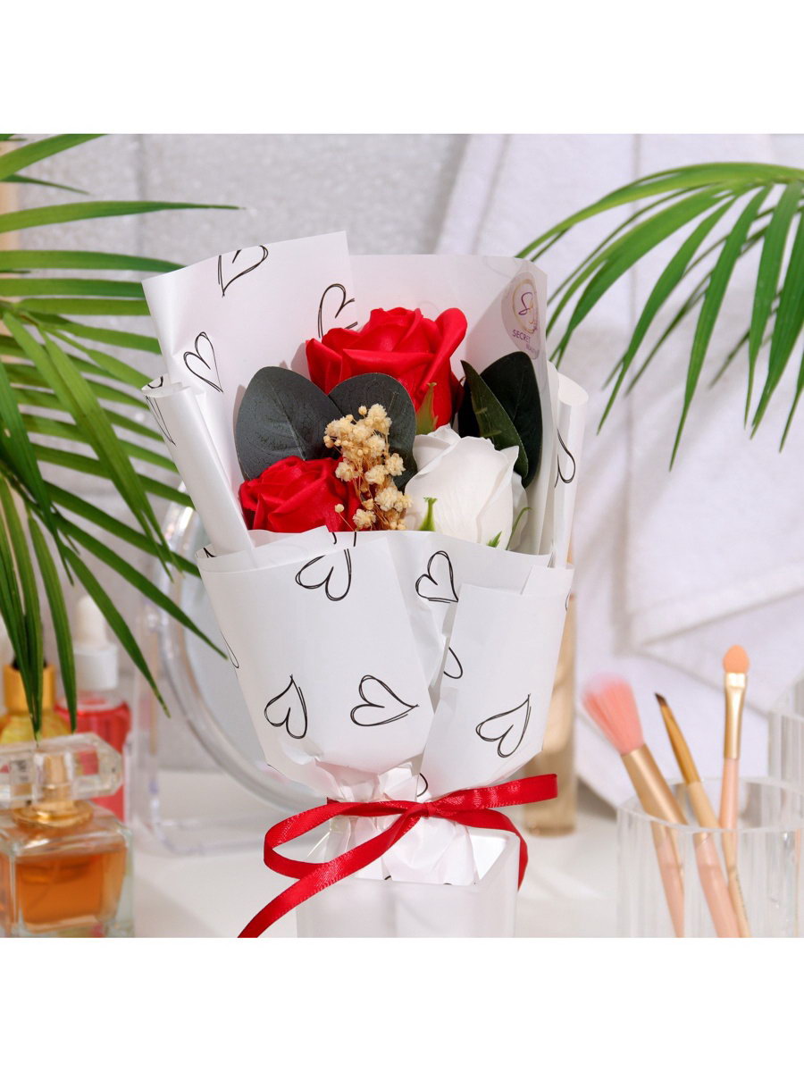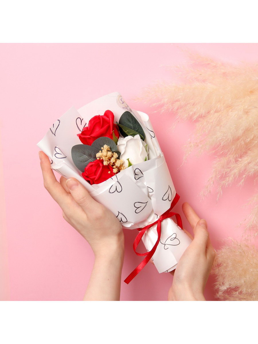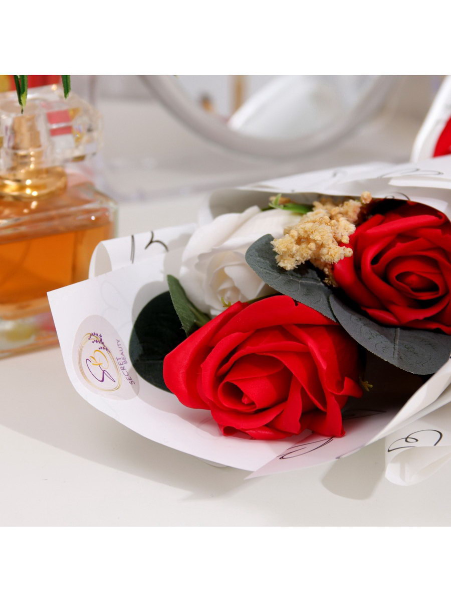 Премиальный букет из красно-белых мыльных роз, 3 шт., 5x5x5 см., SB BEAUTY, Китай
