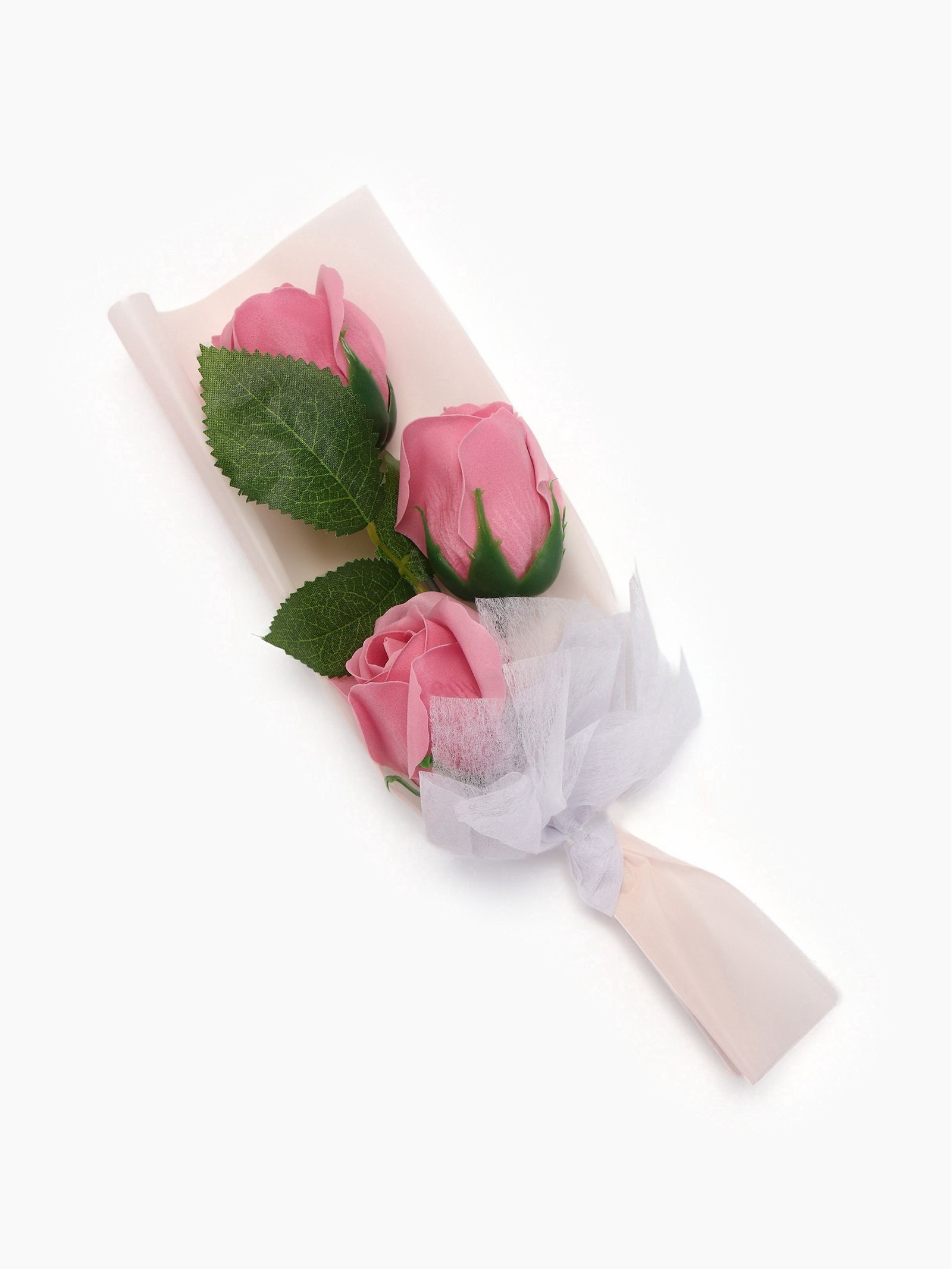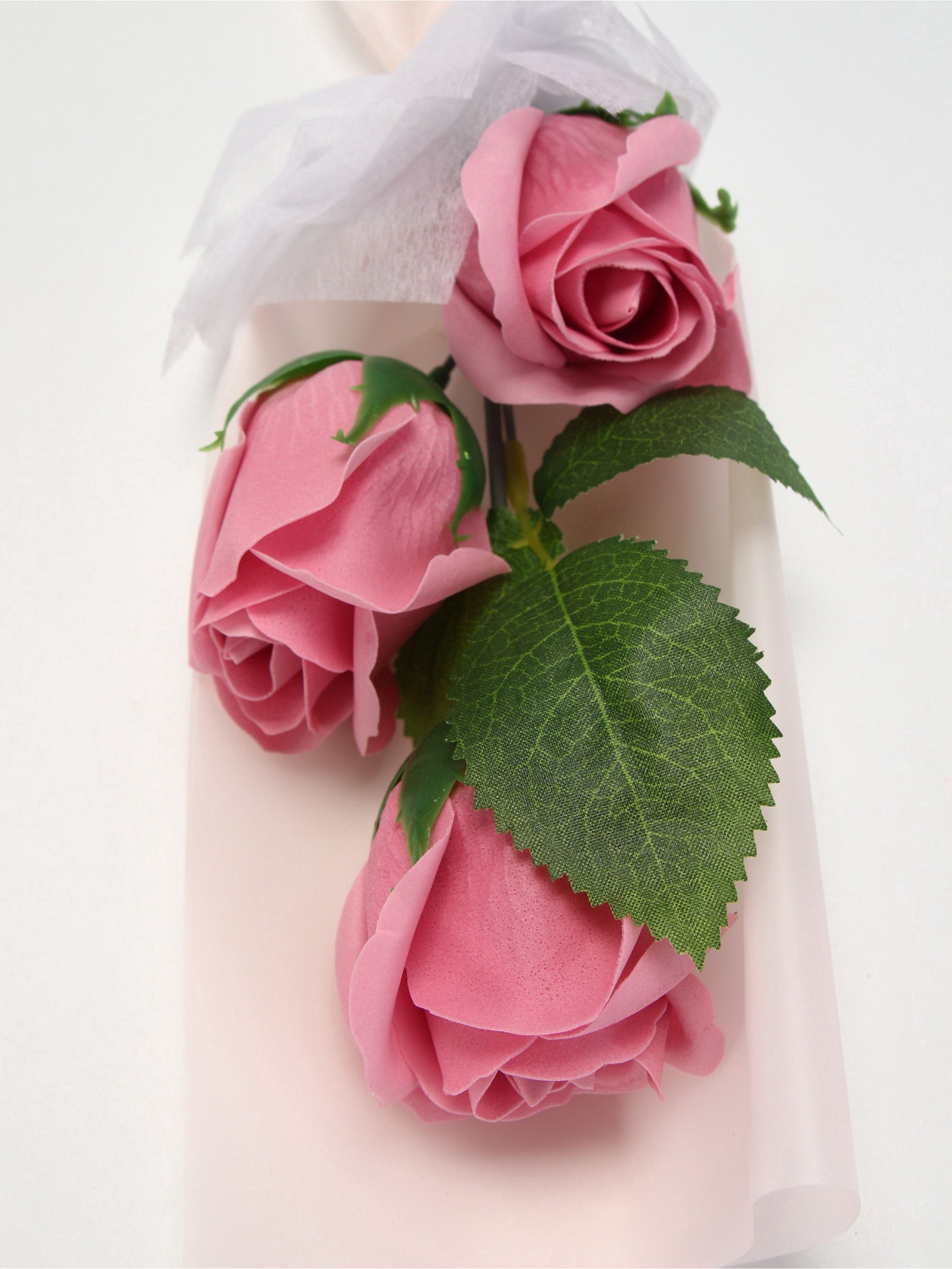 Подарочный букет из трех мыльных роз в колбе, дымно-розовые, SB BEAUTY, Китай