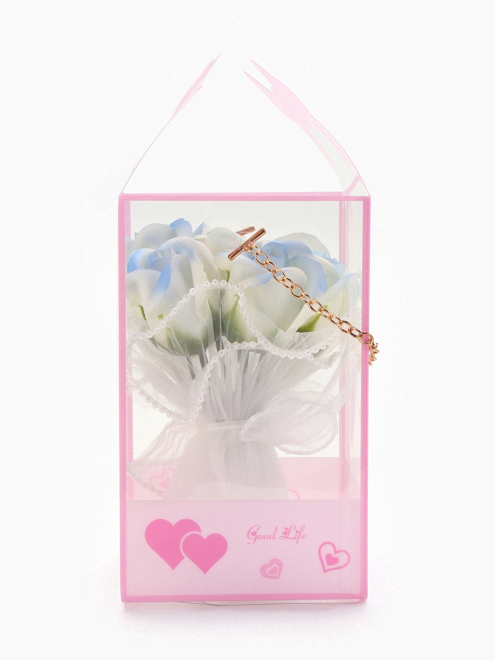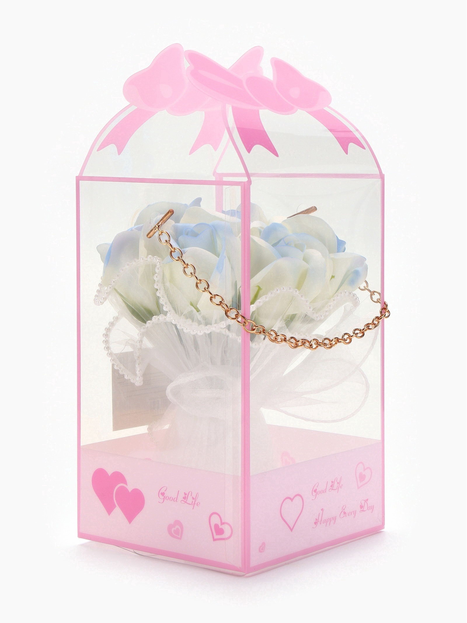 Подарочный набор из 7 бело-голубых мыльных роз, в коробке, SB BEAUTY, Китай
