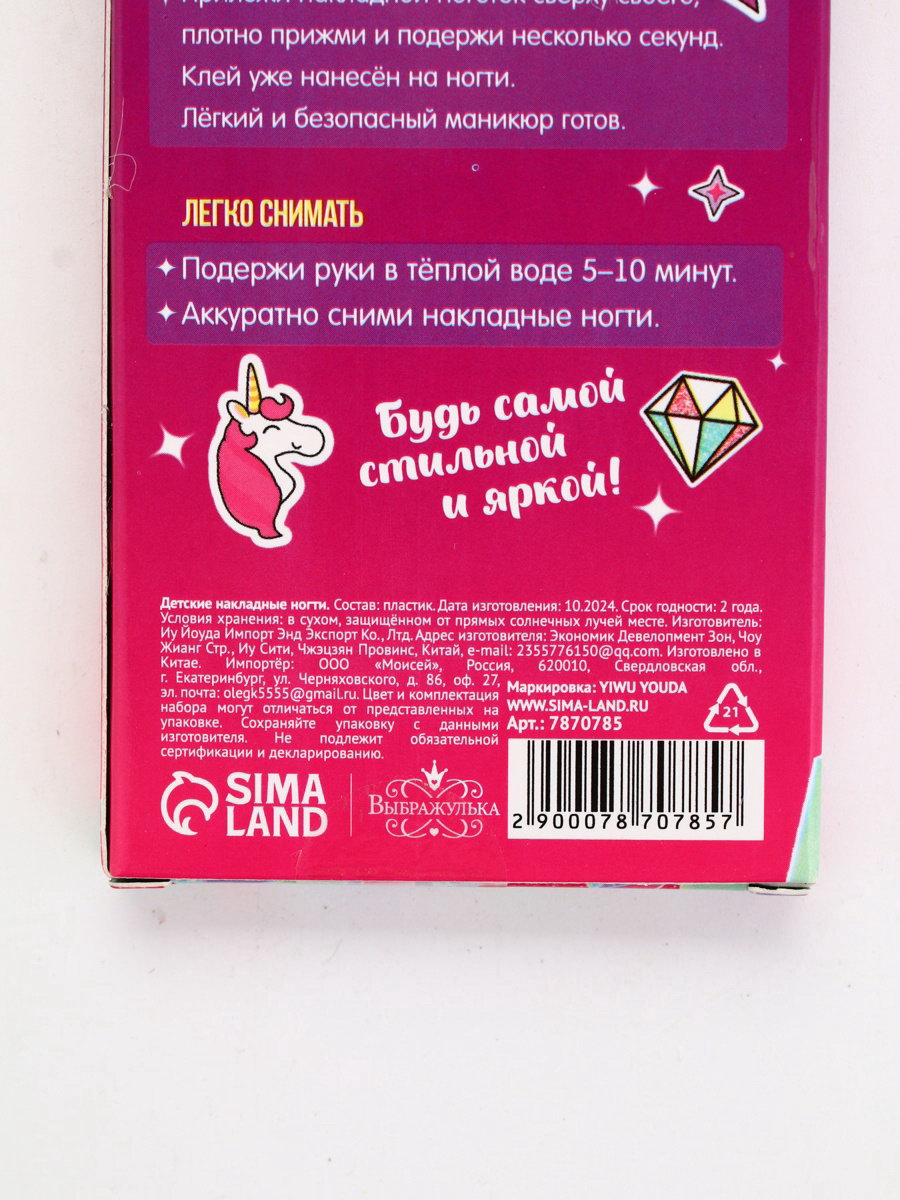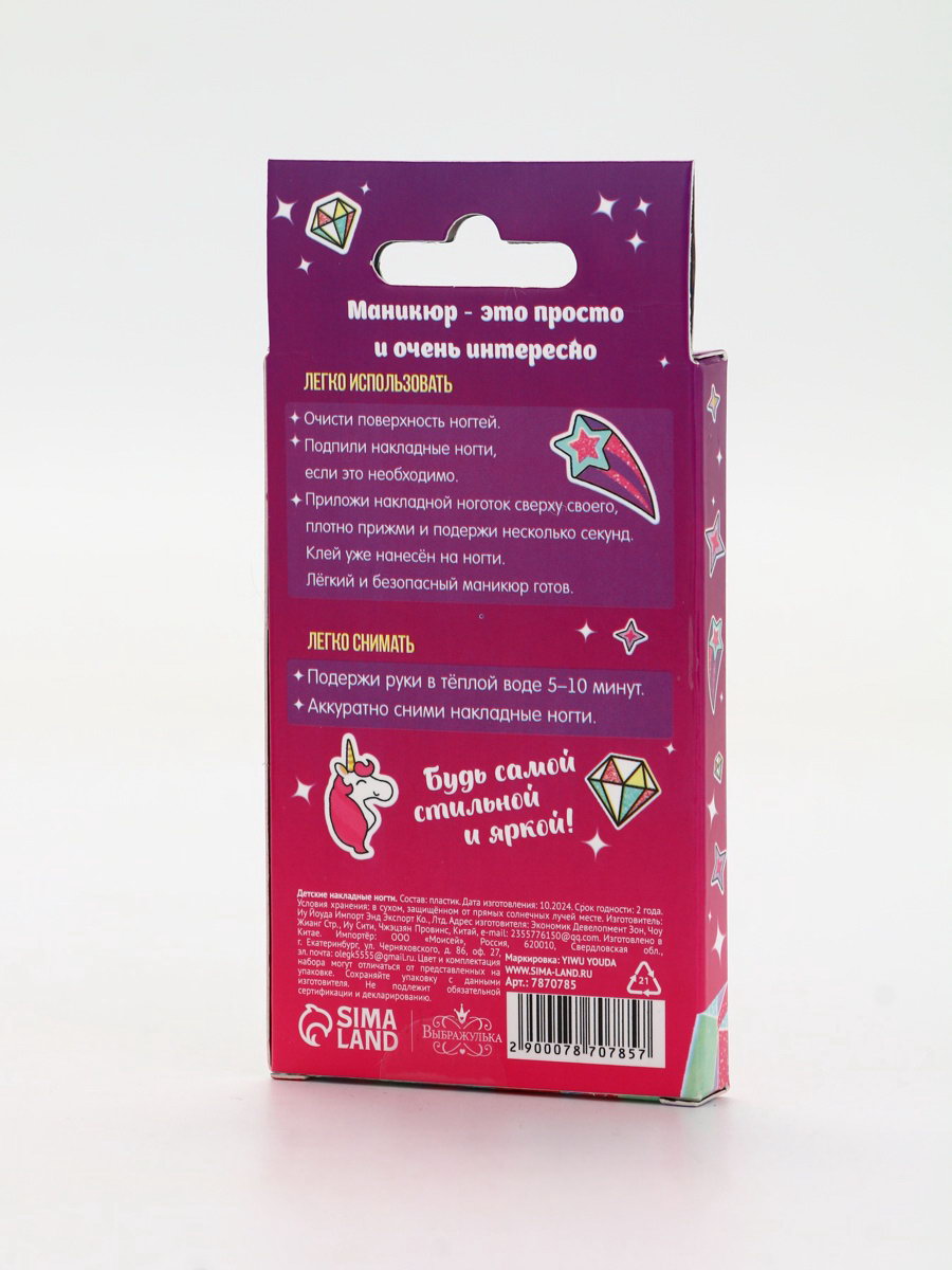Детские накладные ногти "Сияй ярче звёзд", 12 шт., 6.7x10.5x1.2 см., Выбражулька, Китай