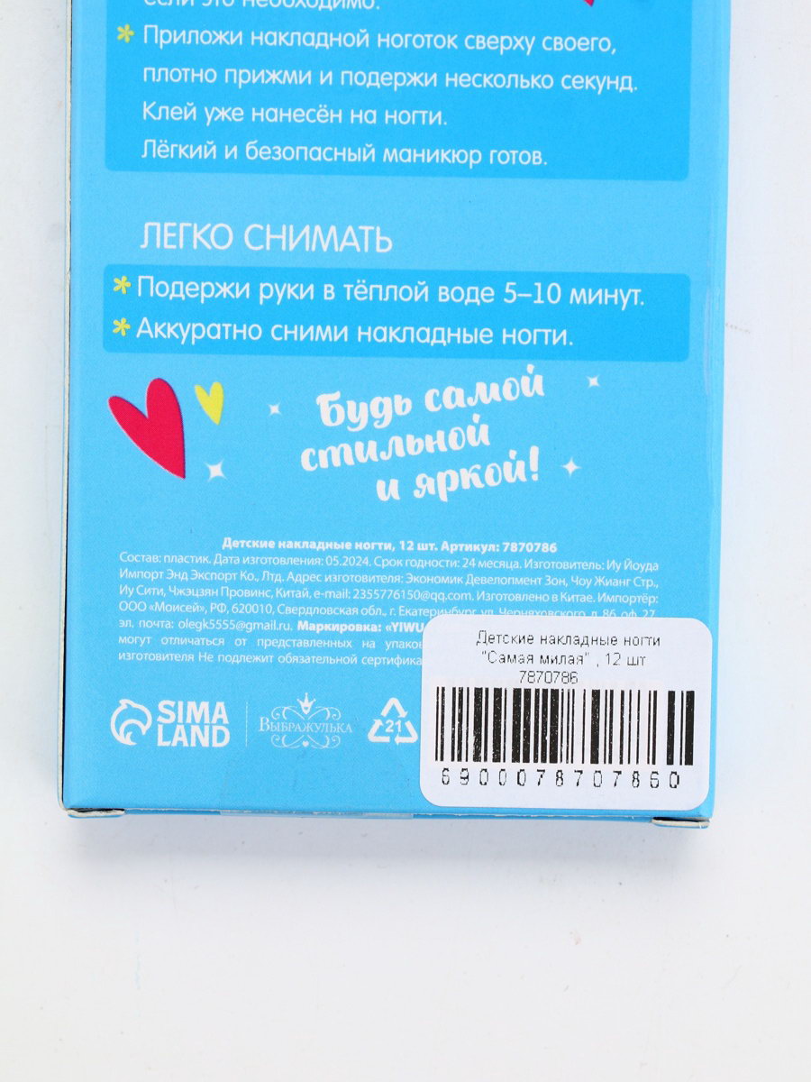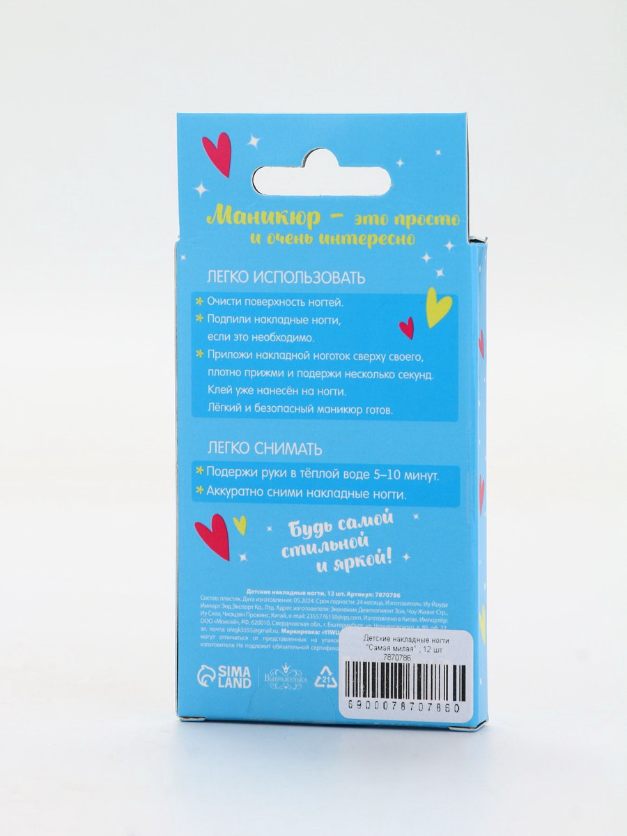 Детские накладные ногти "Самая милая", 12 шт., 6.7x10.5x1.2 см., Выбражулька, Китай