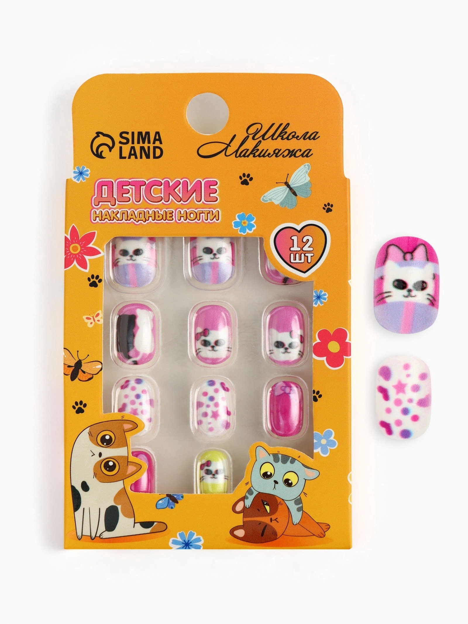 Детские накладные ногти "Мягкие лапки"", 12 шт, Школа талантов, Китай