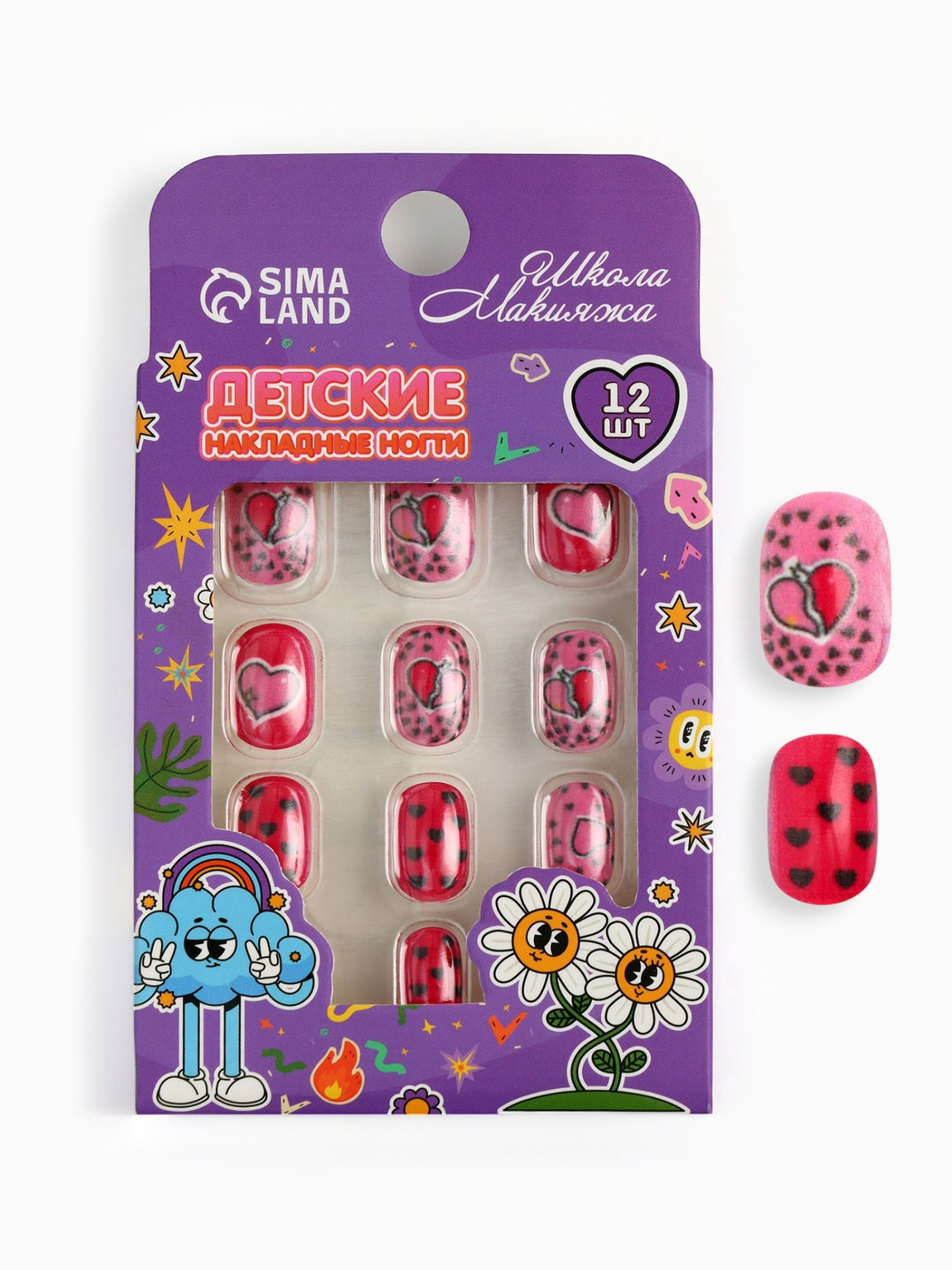 Детские накладные ногти "Love Red", 12 шт, Школа талантов, Китай