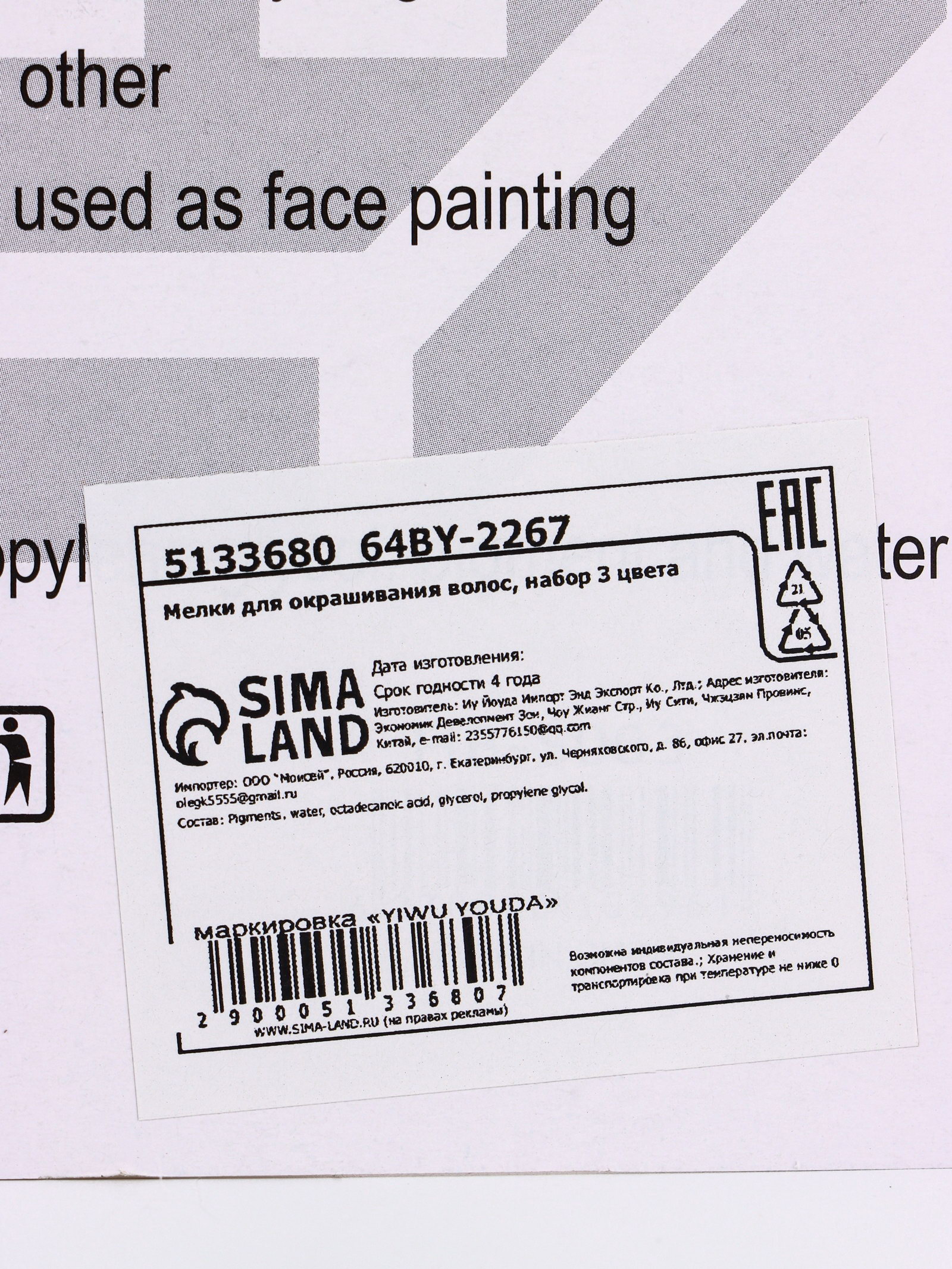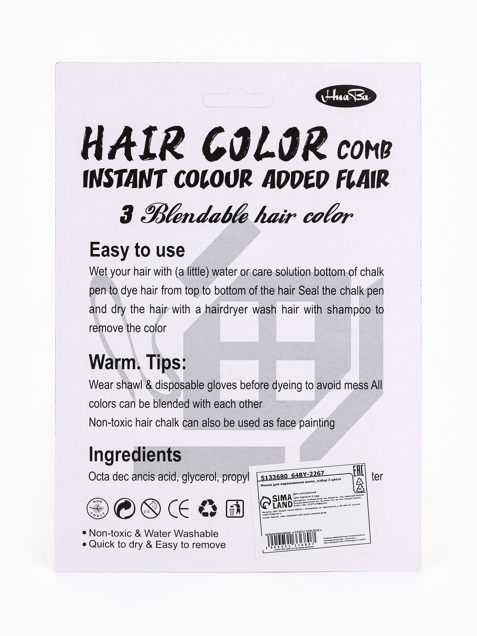Мелки для волос с насадкой, набор 3 цвета, 15x21x2 см., Китай
