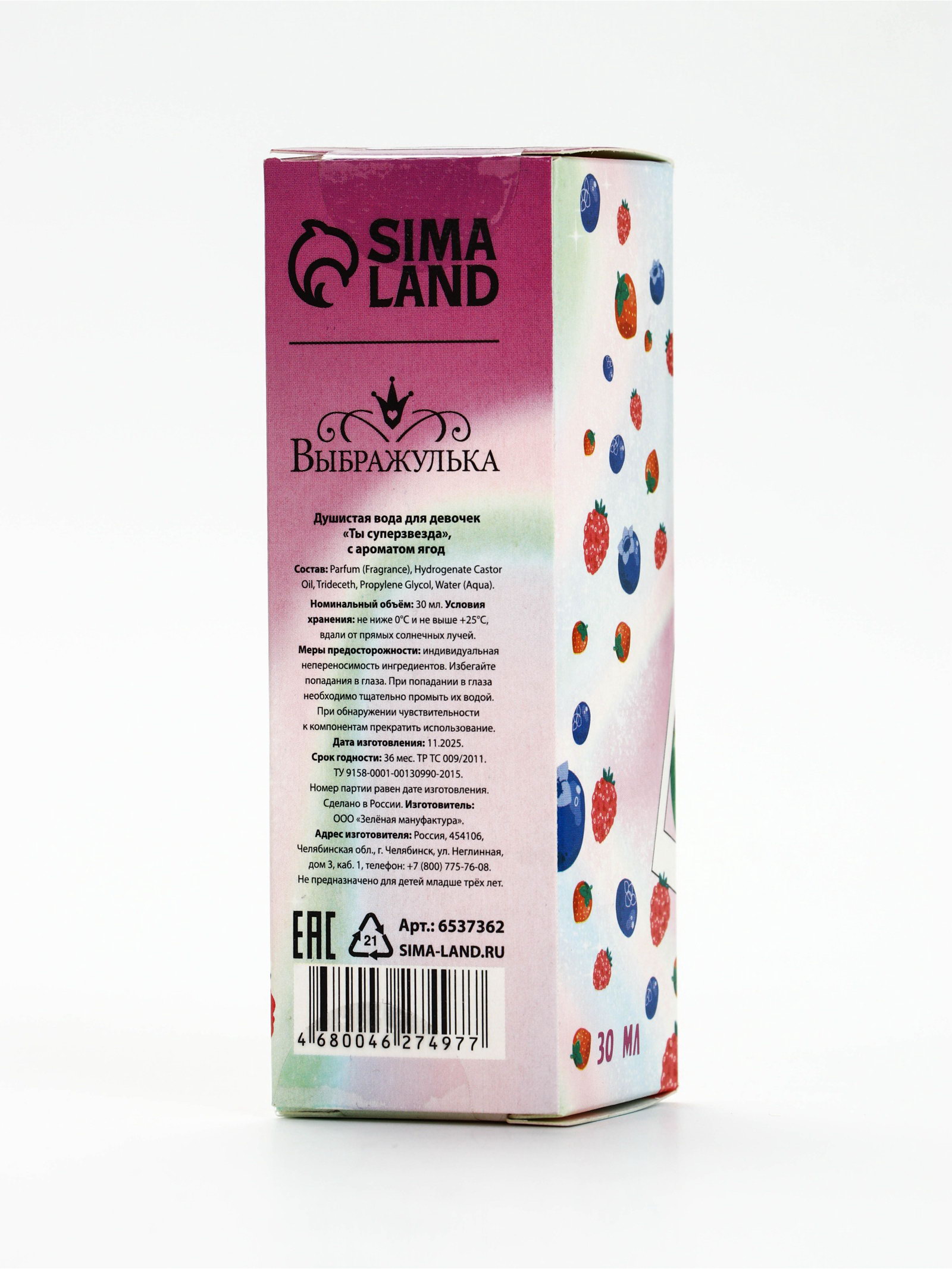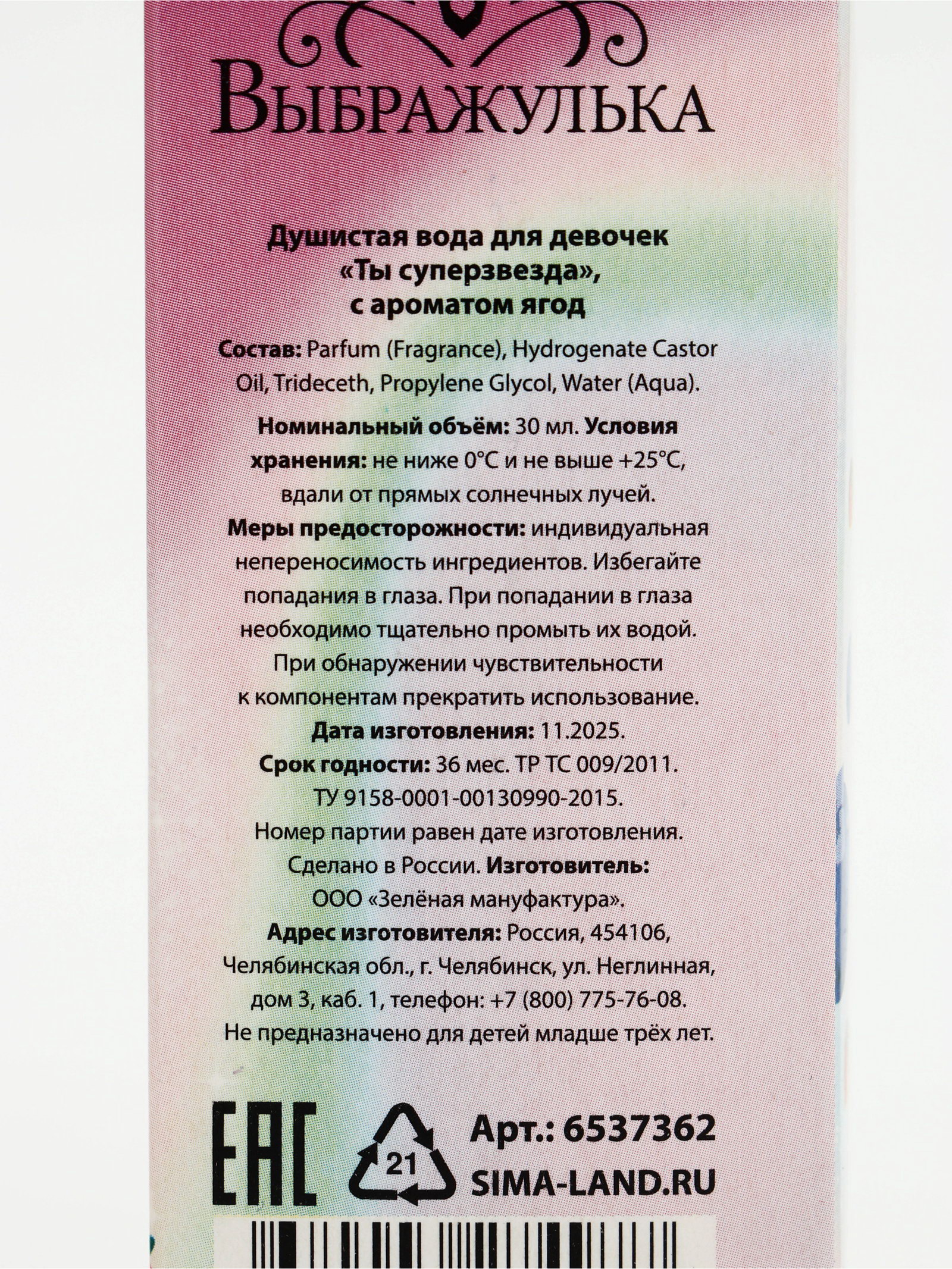 Душистая вода для девочек "Ты суперзвезда" с ароматом ягод, 30 мл, 30 мл., Выбражулька, Россия