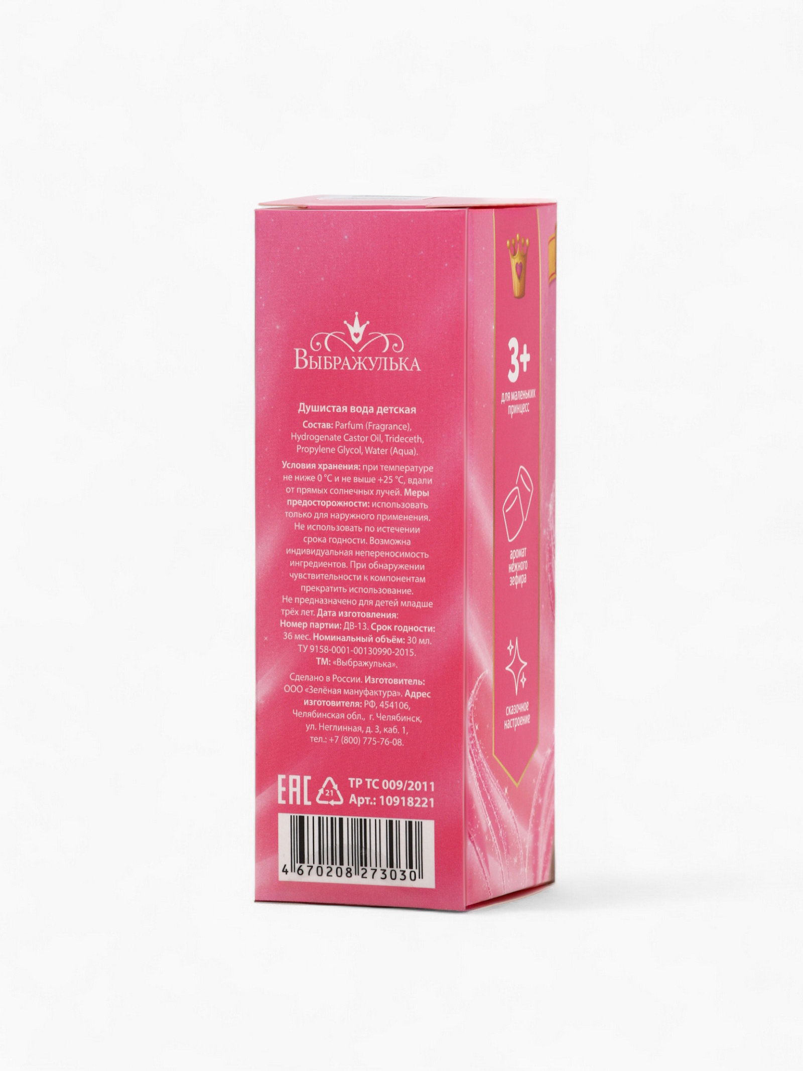 Размер упаковки: 4 x 4 x 12 см. tnved: 3303009000 Лицензия разработки: Да Честный знак: Да Аромат: Карамель Вид дозатора: Распылитель Для кого: Для девочки Душистая вода "Твоя сказка сбудется" с ароматом ванильной карамели нежный, тёплый и по-настоящему волшебный парфюм для юных мечтательниц! Объём 30 мл идеален для первого аромата. Роскошная композиция раскрывается сладкими нотами тающей карамели, мягкой ванили как объятия из детства. Аромат деликатный, ненавязчивый и безопасный для чувствительной кожи. Флакон украшен изящным дизайном с Принцессами Дисней, напоминающей о том, что каждая девочка героиня своей собственной сказки. Идеален для повседневного ношения, утренников или как трогательный подарок. Пусть каждый день пахнет теплом, добротой и сладким чудом! | ||