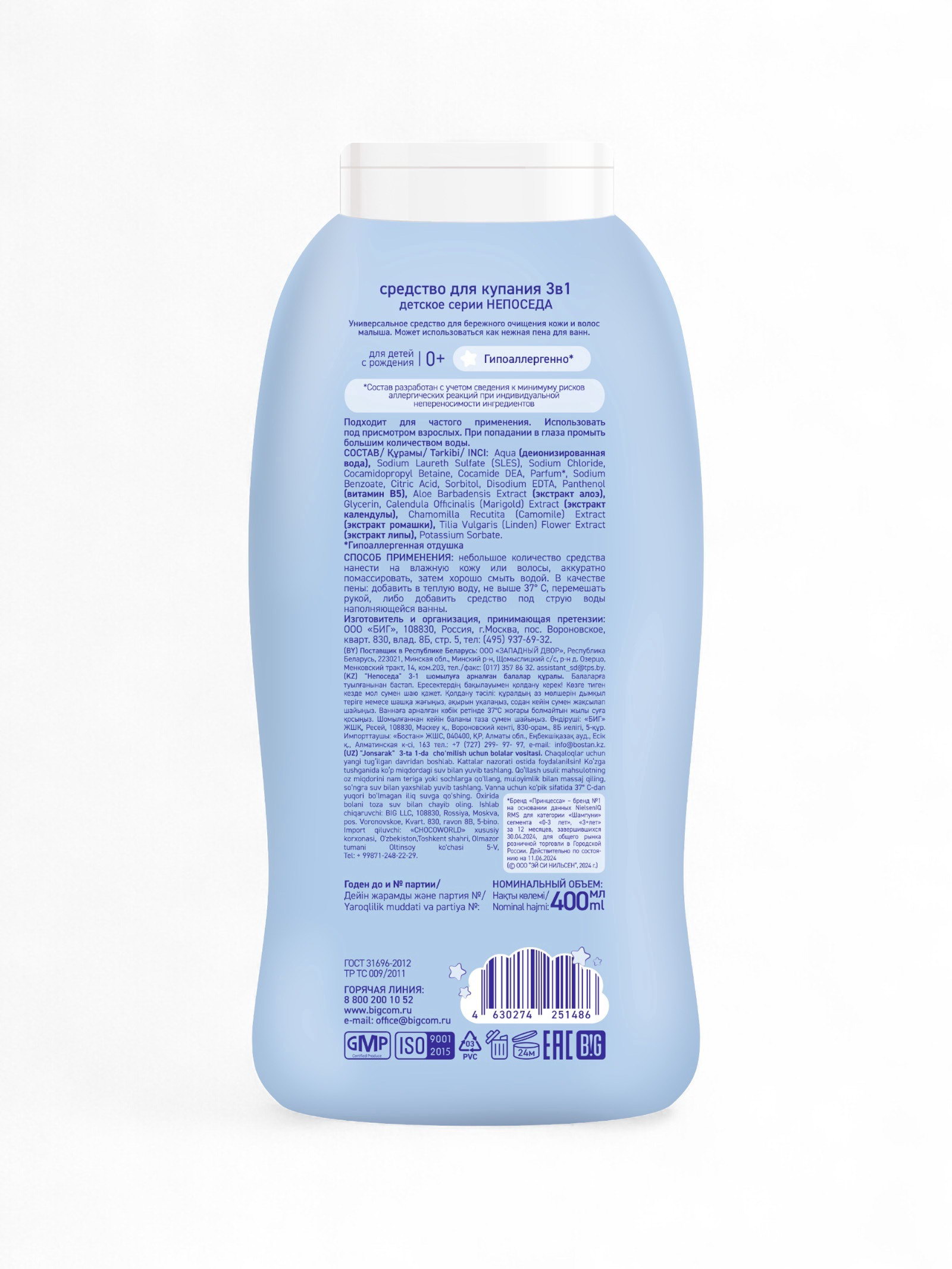 Средство для купания детское 3 в 1 Д-пантенол, алоэ, календула, 400 мл, 400 мл., Непоседа, Россия