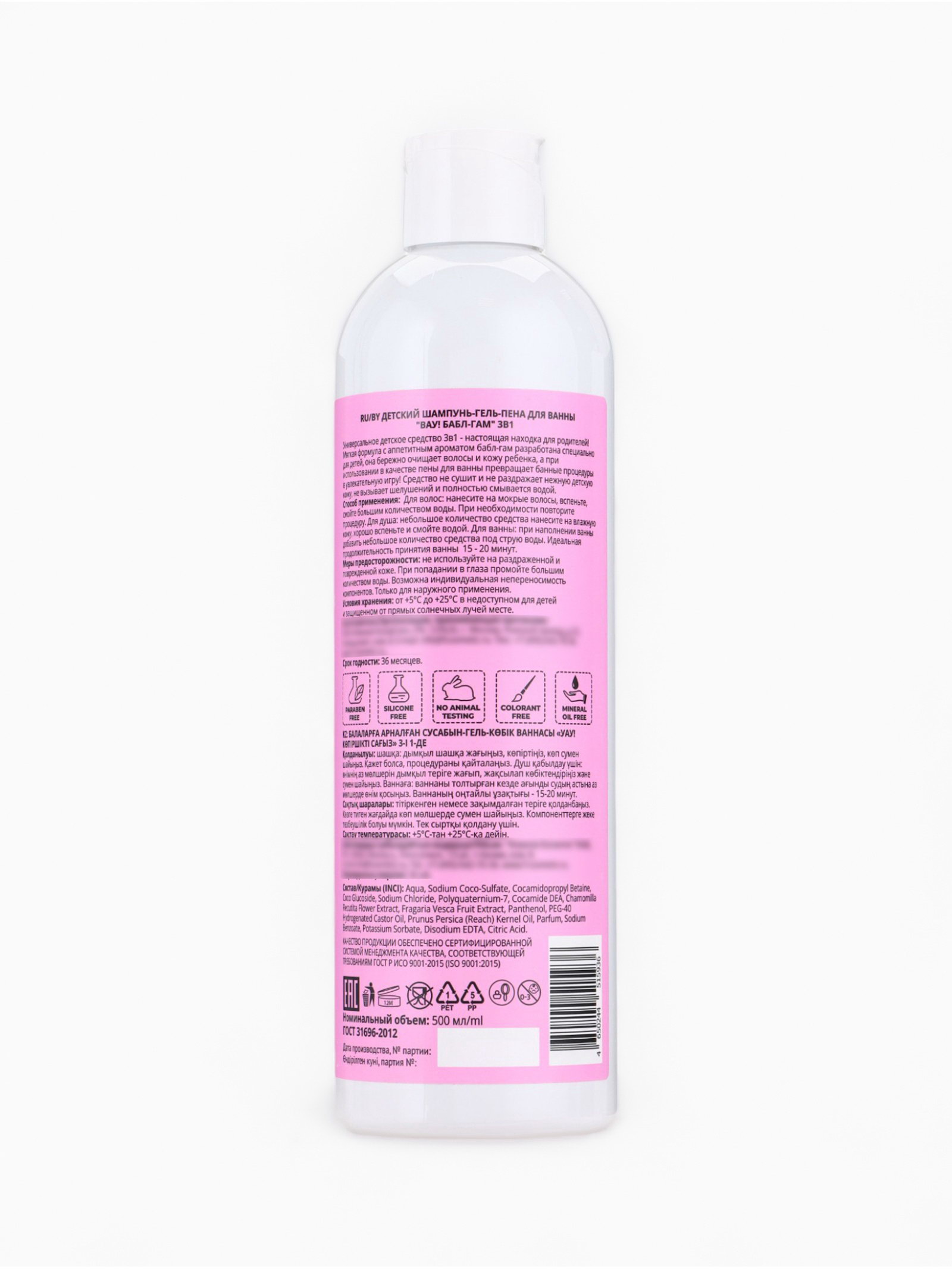 Состав (INCI): Aqua, Sodium Coco-Sulfate, Cocamidopropyl Betaine, Coco Glucoside, Sodium Chloride, Polyquaternium-7, Cocamide DEA, Chamomilla Recutita Flower Extract, Fragaria Vesca Fruit Extract, Panthenol, PEG-40 Hydrogenated Castor Oil, Prunus Persica (Peach) Kernel Oil, Parfum, Sodium Benzoate, Potassium Sorbate, Disodium EDTA, Citric Acid. Способ применения: