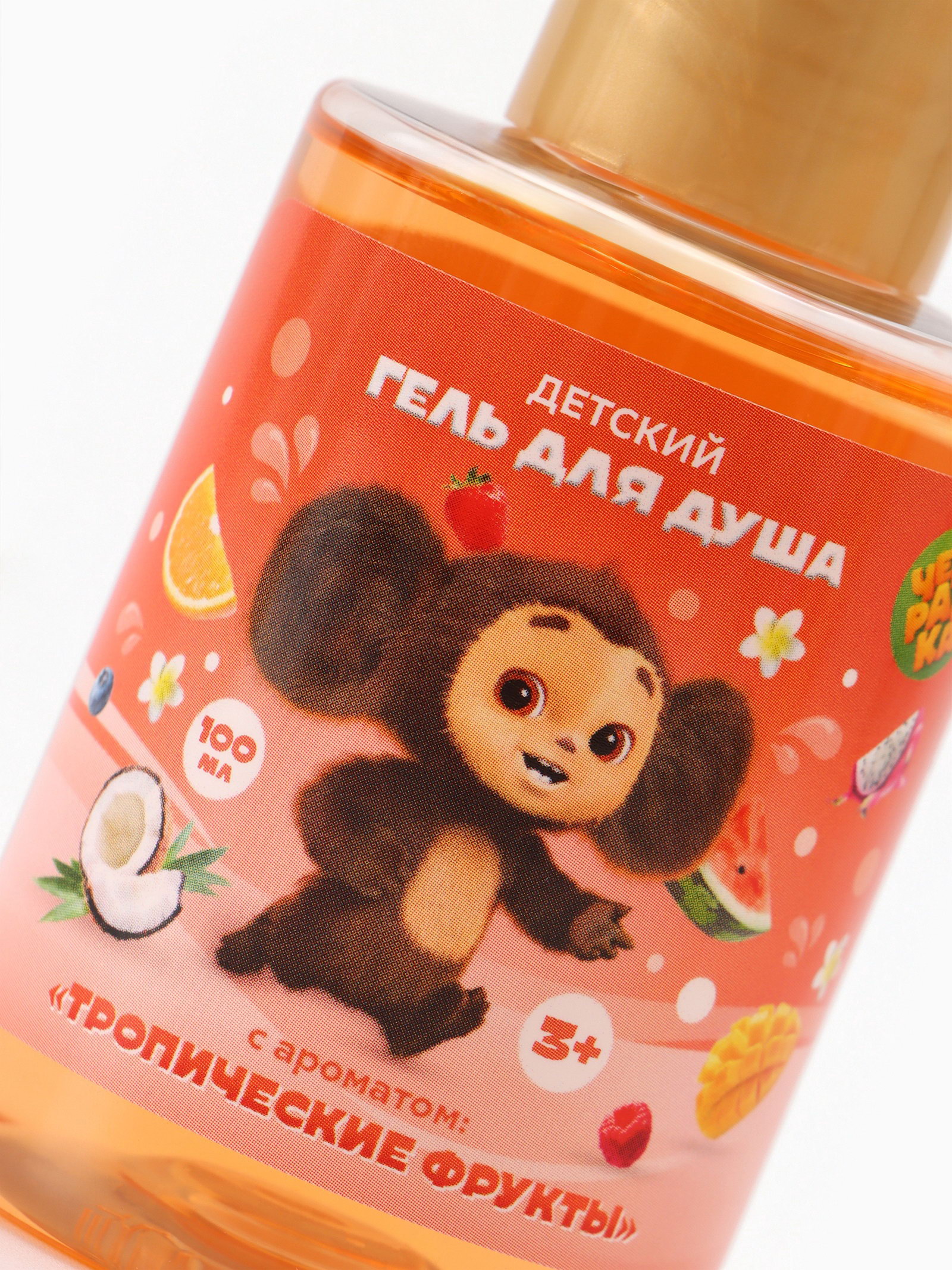 Гель для душа детский, аромат тропические фрукты, 100 мл, Чебурашка, ЧЕБУРАШКА, Россия