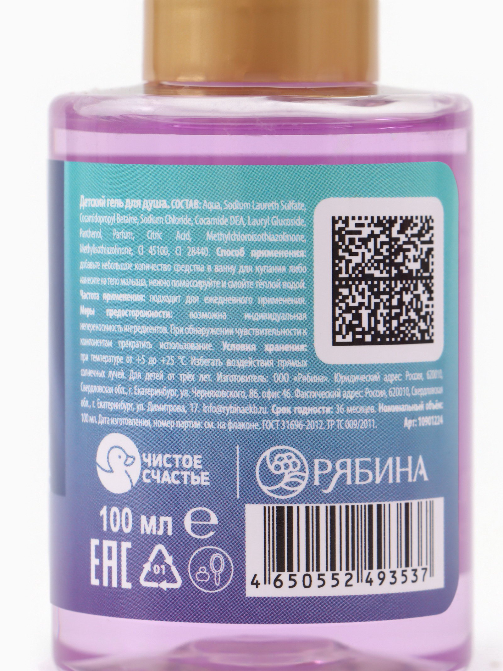 Детский гель для душа, аромат фруктовый лед, 100 мл, Снежная принцесса, Чистое счастье, Россия