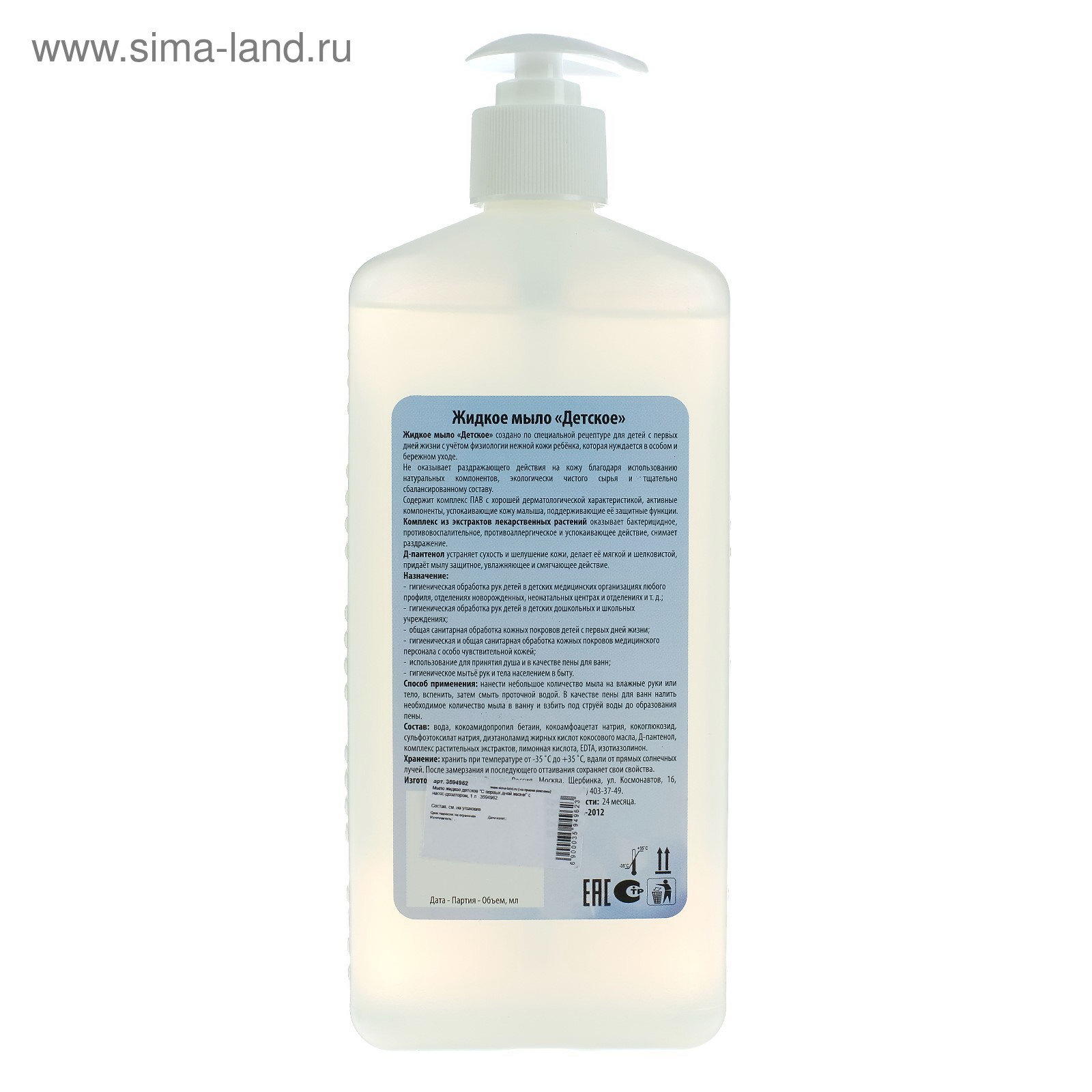 Размер упаковки: 7 x 21 x 8.5 см. Тип: Жидкое Вид мыла: Детское tnved: 3401209000 Область применения: Для тела Вес, г/Объём, мл: 1000 Запрет реализации по сегментам: 00000000208 Цвет: Прозрачный Аромат: Без аромата Жидкое мыло создано с учётом особенностей нежной кожи ребёнка. Средство не оказывает раздражающего действия благодаря натуральным компонентам, экологически чистому сырью и тщательно сбалансированному составу. Особенности
