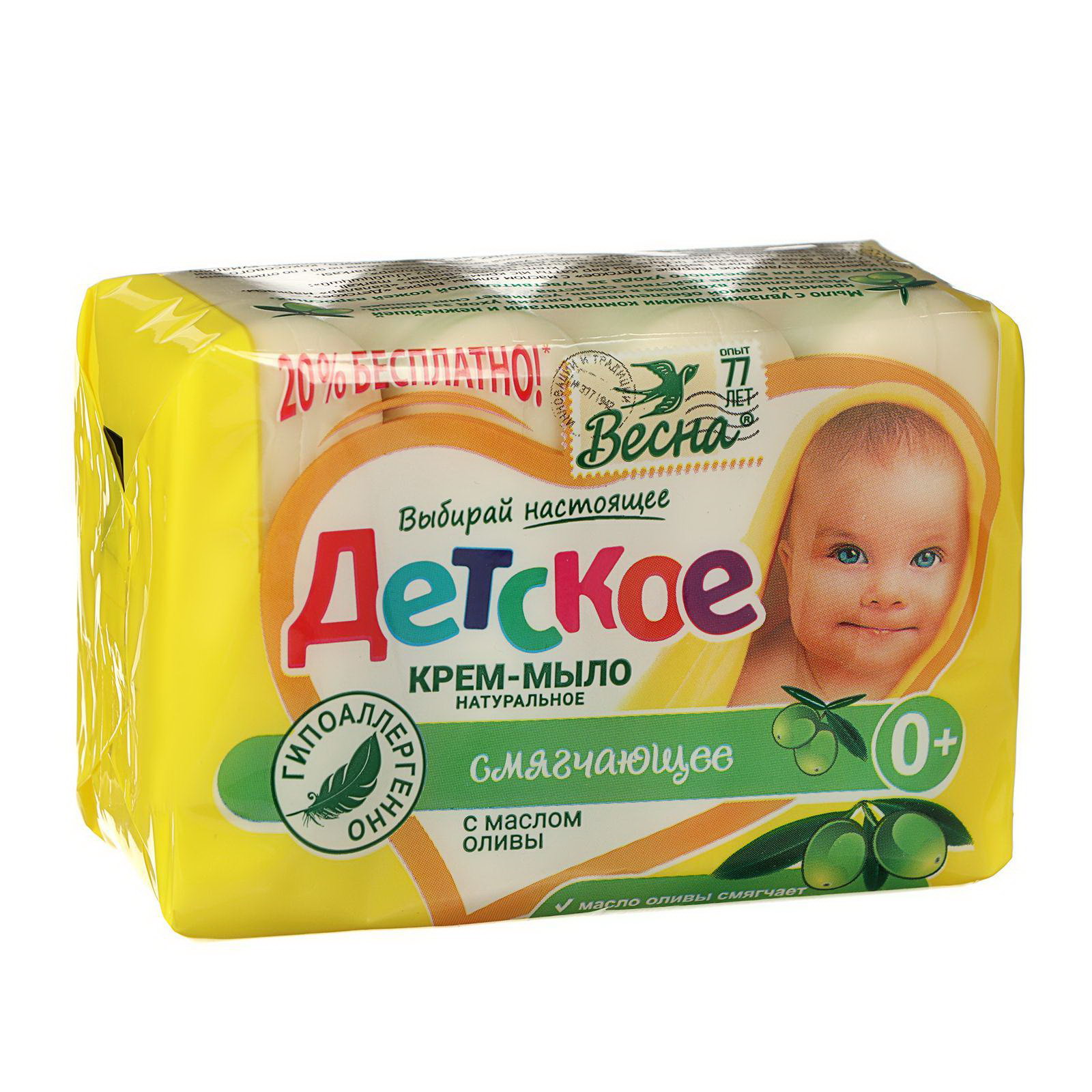 Детское крем-мыло с маслом оливы, 4 шт. по 75 г, 7.2x10.4x4.8 см., Весна, Россия