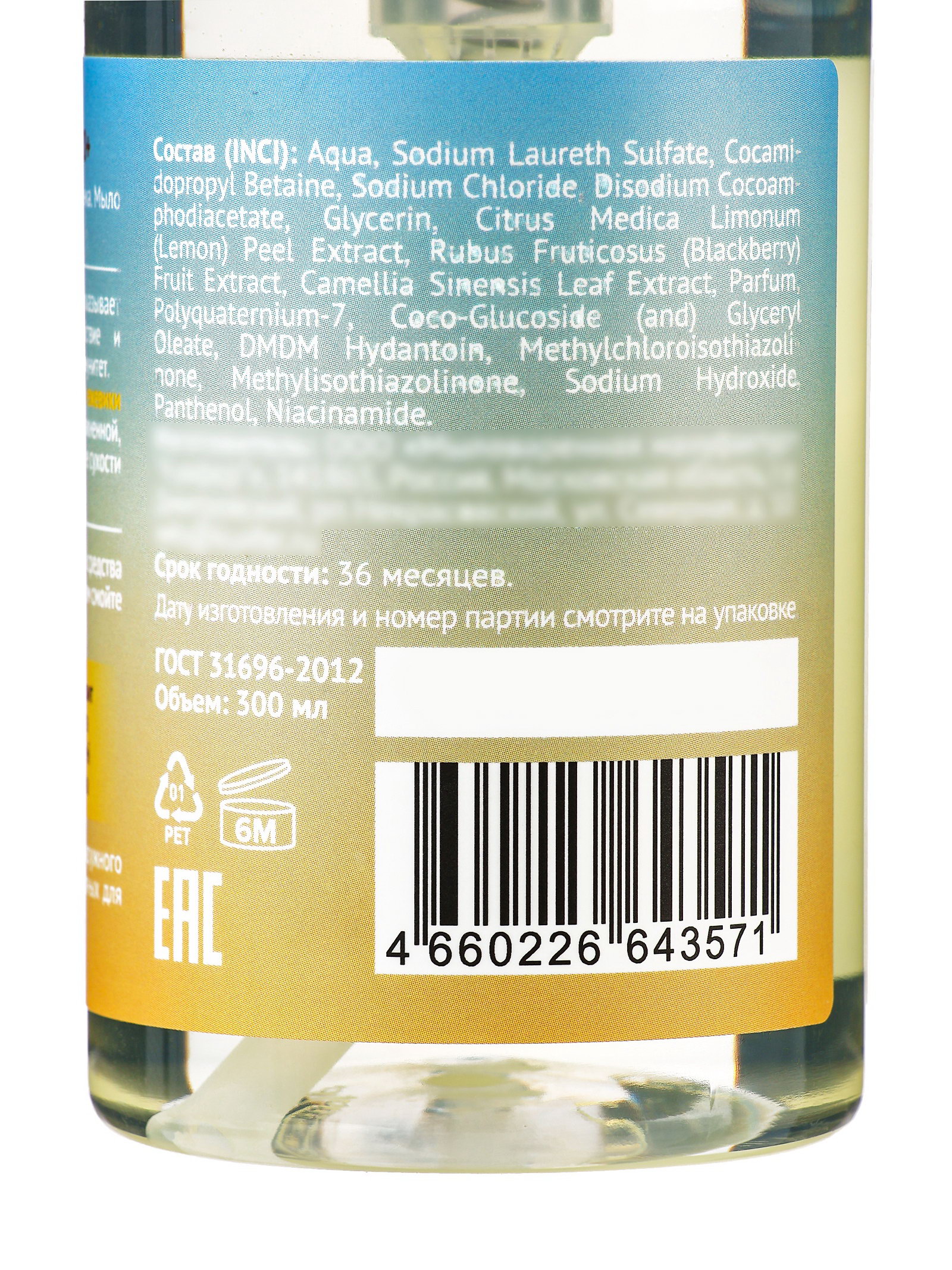 Размер упаковки: 6 x 6 x 16 см. tnved: 3401300000 Вид мыла: Детское Тип: Жидкое Область применения: Для рук Вес, г/Объём, мл: 300 Температурное ограничение: Нет Цвет: Прозрачный Аромат: Нейтральный Детское жидкое мыло для рук бережно и эффективно очищает кожу ребенка. Мыло хорошо пенится и легко смывается водой. Экстракт лимона оказывает антибактериальное действие и стимулирует местный иммунитет. Экстракты зеленого чая и ежевики сохраняют кожу увлажненной, предупреждают появление сухости и покраснений. Способ применения: небольшое количество средства выдавите на влажную ладонь, вспеньте, затем смойте теплой водой. Состав: Aqua, Sodium Laureth Sulfate, Cocami-dopropyl Betaine, Sodium Chloride, Disodium Cocoam-phodiacetate, Glycerin, Citrus Medica Limonum (Lemon) ,Peel Extract, Rubus Fruticosus (Blackberry), Fruit Extract, Camellia Sinensis, Leaf Extract, Parfum, Polyquaternium-7, Coco-Glucoside (and) Glyceryl Oleate, DMDM Hydantoin, Methylchloroisothiazoli-none, Methylisothiazolinone, Sodium Hydroxide, Panthenol, Niacinamide. | ||