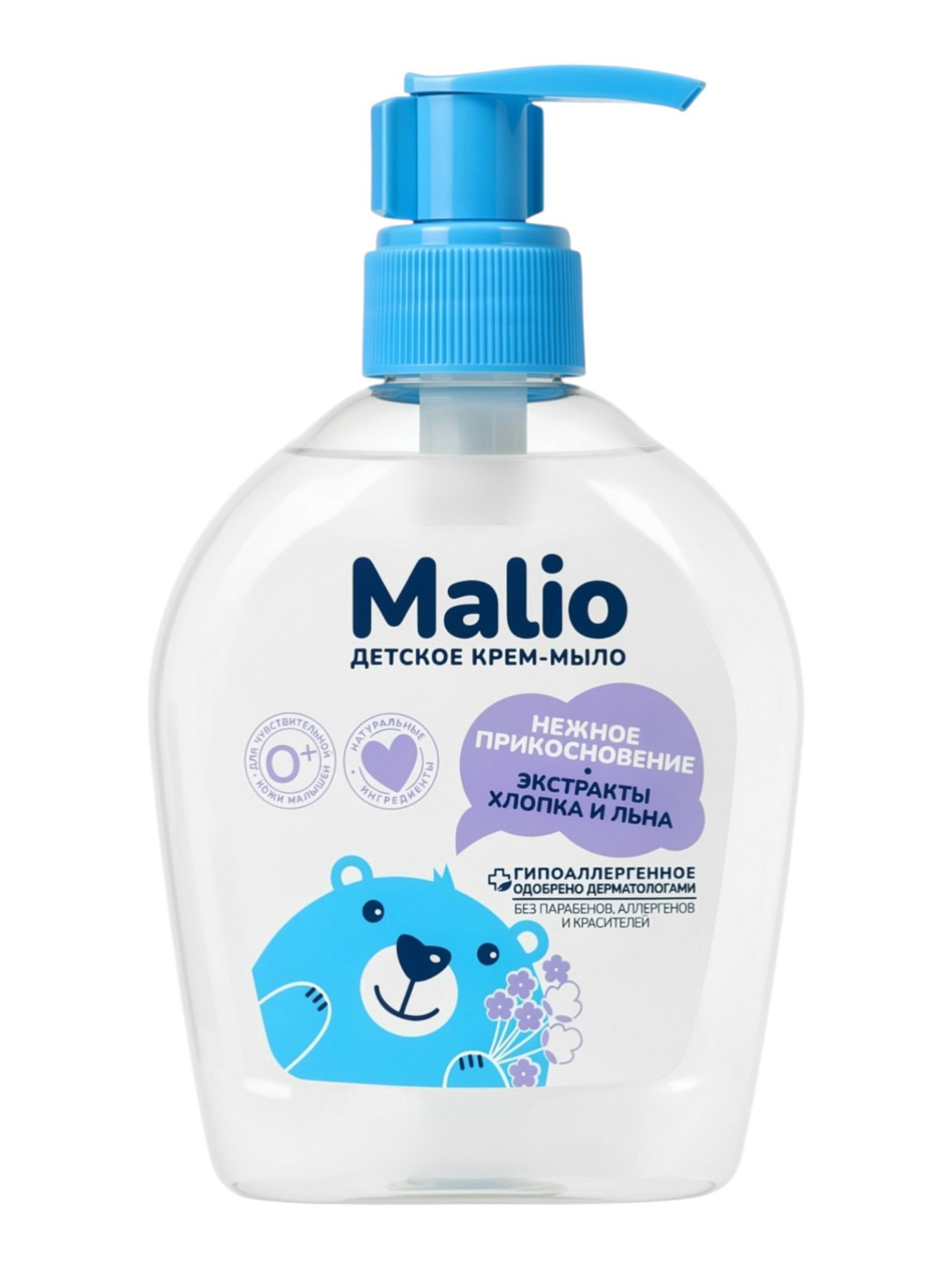 Крем-мыло жидкое детское "Малио" экстракт хлопка и льна, 300 мл, Malio, Россия