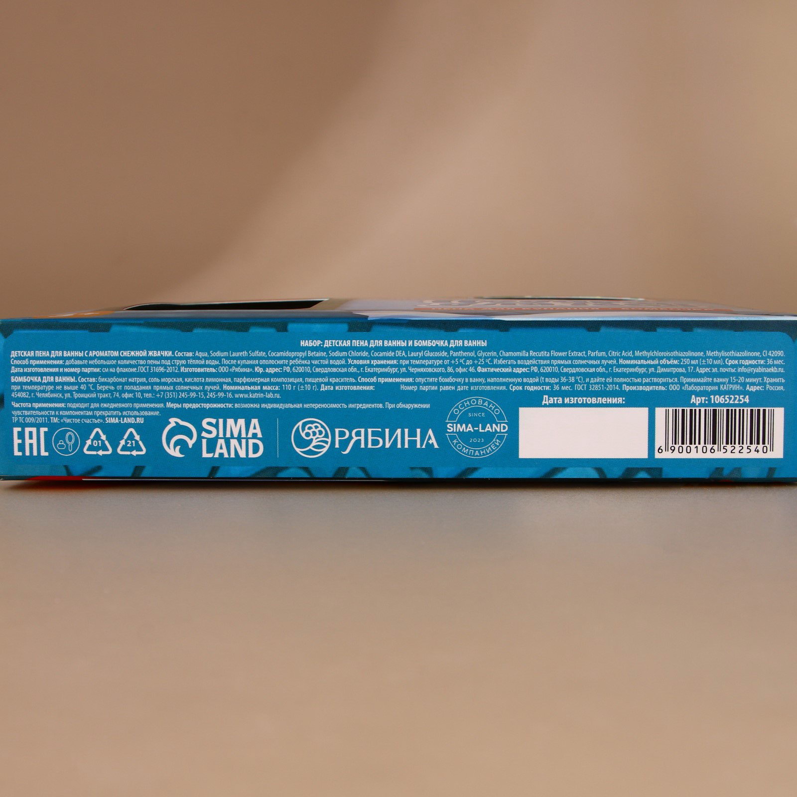Возраст: Детский, Для детей Составляющие набора: Бомбочка для ванн, Пена для ванн Вид: Бомбочка для ванн, Пена для ванн Для кого: Для девочки, Для мальчика Размер упаковки: 21 x 19 x 4 см. В наборе, шт.: 2 Адресат: Без адресата Вид упаковки: Подарочная коробка Тематика праздника: Новый год Тематика подарка: Уходовая косметика Аромат: Мятная жвачка Назначение: Тонизирование Особенности: Без особенностей Область применения: Для тела Темпер. ограничение НЕ НИЖЕ ℃: +5 Вес, г: 110 Темпер. ограничение НЕ ВЫШЕ ℃: +25 Форма: Фигурная Набор: Да Цвет: Голубой Символ года: Нет tnved: 3401300000 tnved: 3401300000 "Пена: Aqua, Sodium Laureth Sulfate, Cocamidopropyl Betaine, Sodium Chloride, Сocamide DEA, Lauryl Glucoside, Panthenol, Glycerin, Chamomilla Recutita Flower Extract, Parfum, Citric Acid, Methylchloroisothiazolinone, Methylisothiazolinone, Cl 42090. Бомбочка: Бикарбонат натрия, соль морская, кислота лимонная, парфюмерная композиция, пищевой краситель." | ||