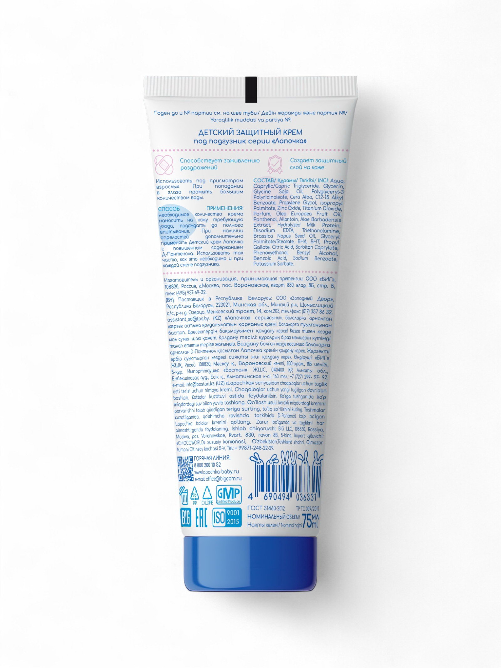 Крем детский под подгузник защитный, для сухой и чувствительной кожи, 75 мл, 75 мл., Лапочка, Россия