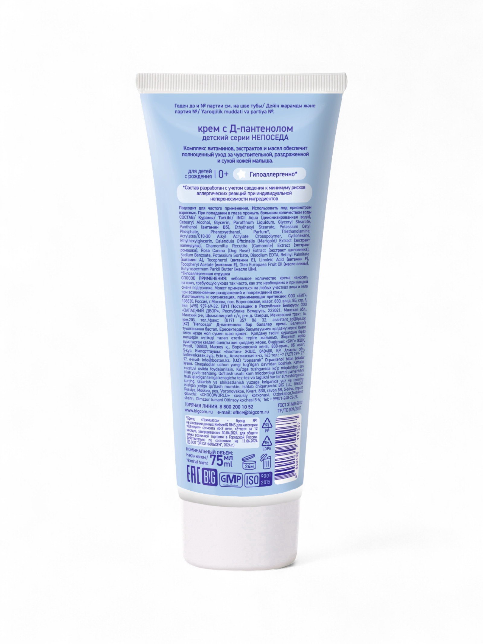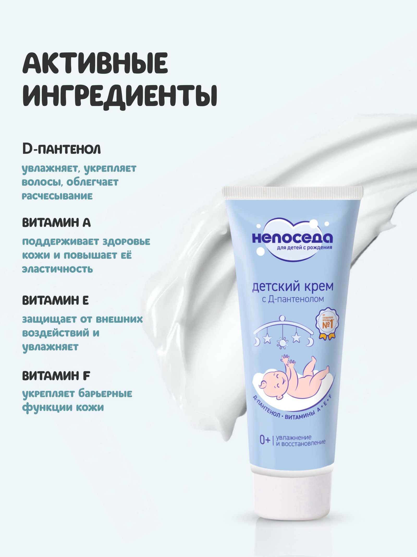 Крем с Д-пантенолом и витаминами, детский увлажнение и восстановление, 75 мл, 75 мл., Непоседа, Россия