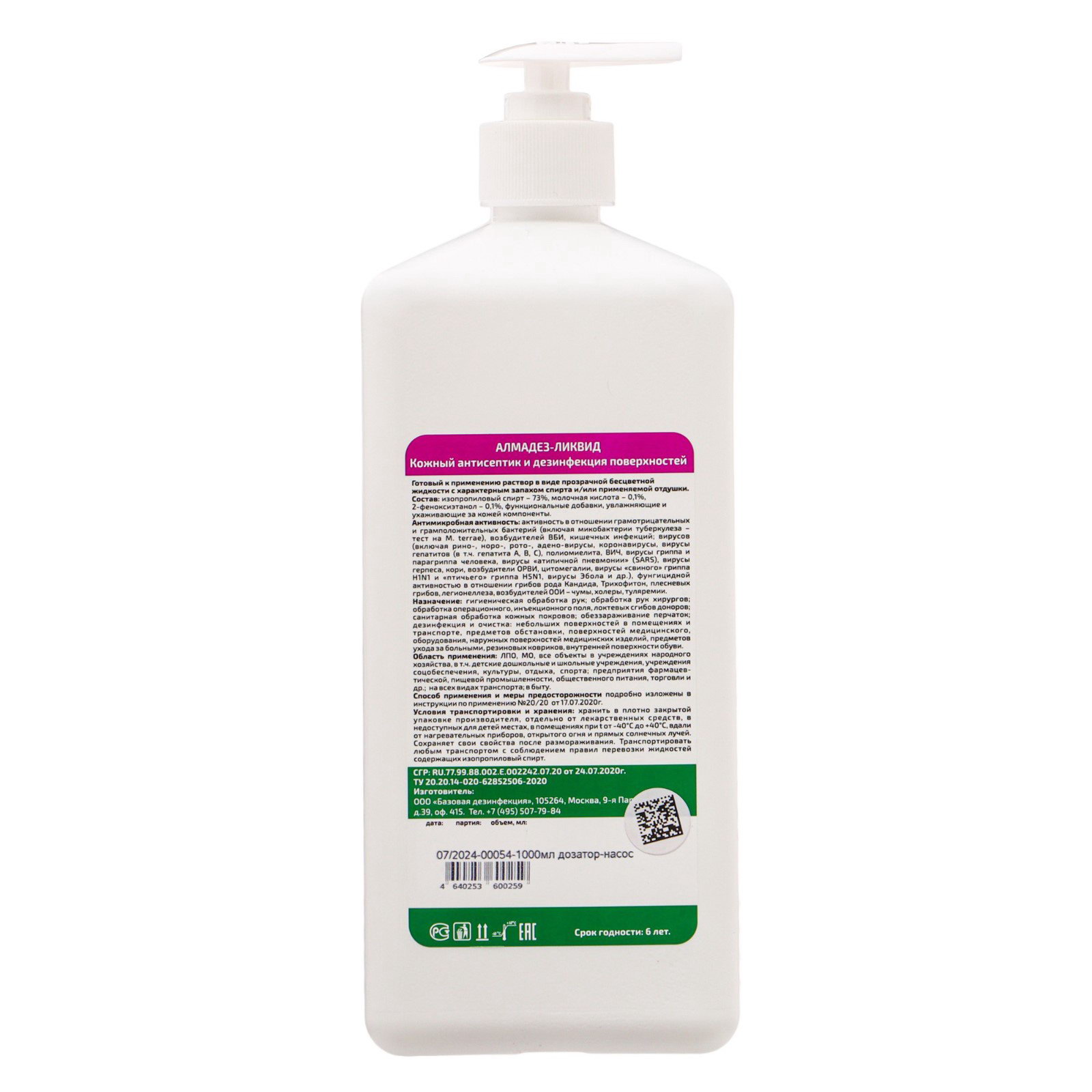 Антисептик кожный "Алмадез-ликвид", с насос-дозатором,1л, 1000 мл., Алмадез, Россия