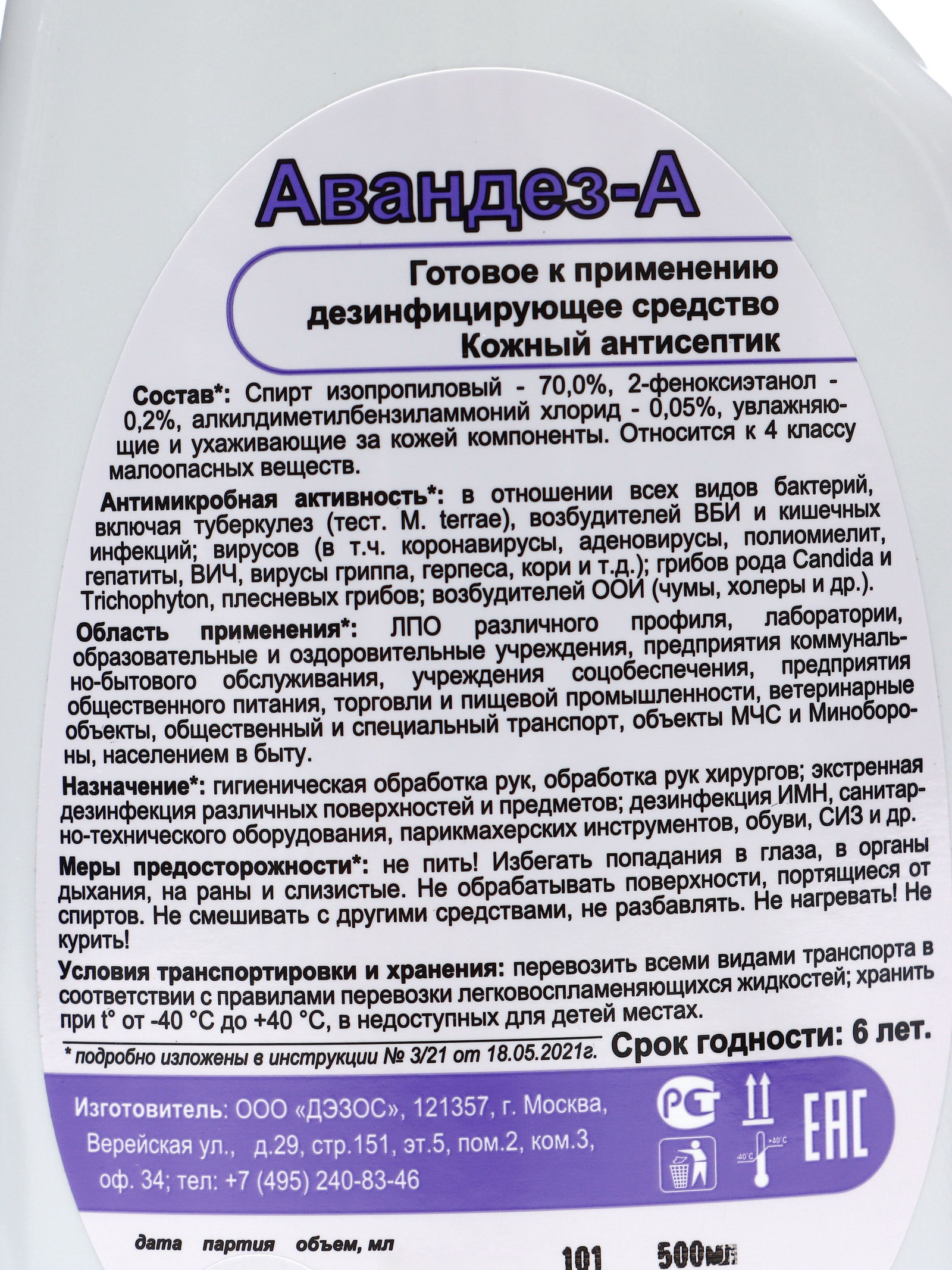 Размер упаковки: 9 x 27 x 5 см. Размер упаковки: 9 x 27 x 5 см. Честный знак: Да Вид: Антисептик Вид: Антисептик tnved: 3808948000 Температурное ограничение: Нет На спиртовой основе: Да Назначение: Бытовые Вид средства: Спрей Для дезинфекции небольших по площади и/или труднододоступных поверхностей и предметов, ИМН, для гигиенической обработки рук и обработки рук хирургов, обработки кожи инъекционного и операционного поля, локтевых сгибов доноров, санитаризации кожных покровов и обеззараживания СИЗ. Готовая к применению прозрачная бесцветная жидкость, обладающая бактерицидной, вирулицидной, туберкулоцидной и фунгицидной активностью, обеспечивающая быстрый и продолжительный антисептический эффект. Обладает пролонгированным действием. Не требует смывания. Полностью отвечает требованиям СанПин и ГОСТ. Относится к 4 классу мало опасных веществ. Способ использования: протирание, орошение, погружение, пропитывание блоков сухих салфеток. Состав: спирт изопропиловый – 70,0%, 2-феноксиэтанол – 0,2%, алкилдиметилбензиламмоний хлорид – 0,05%, а также функциональные добавки, увлажняющие и ухаживающие за кожей компоненты. | ||
