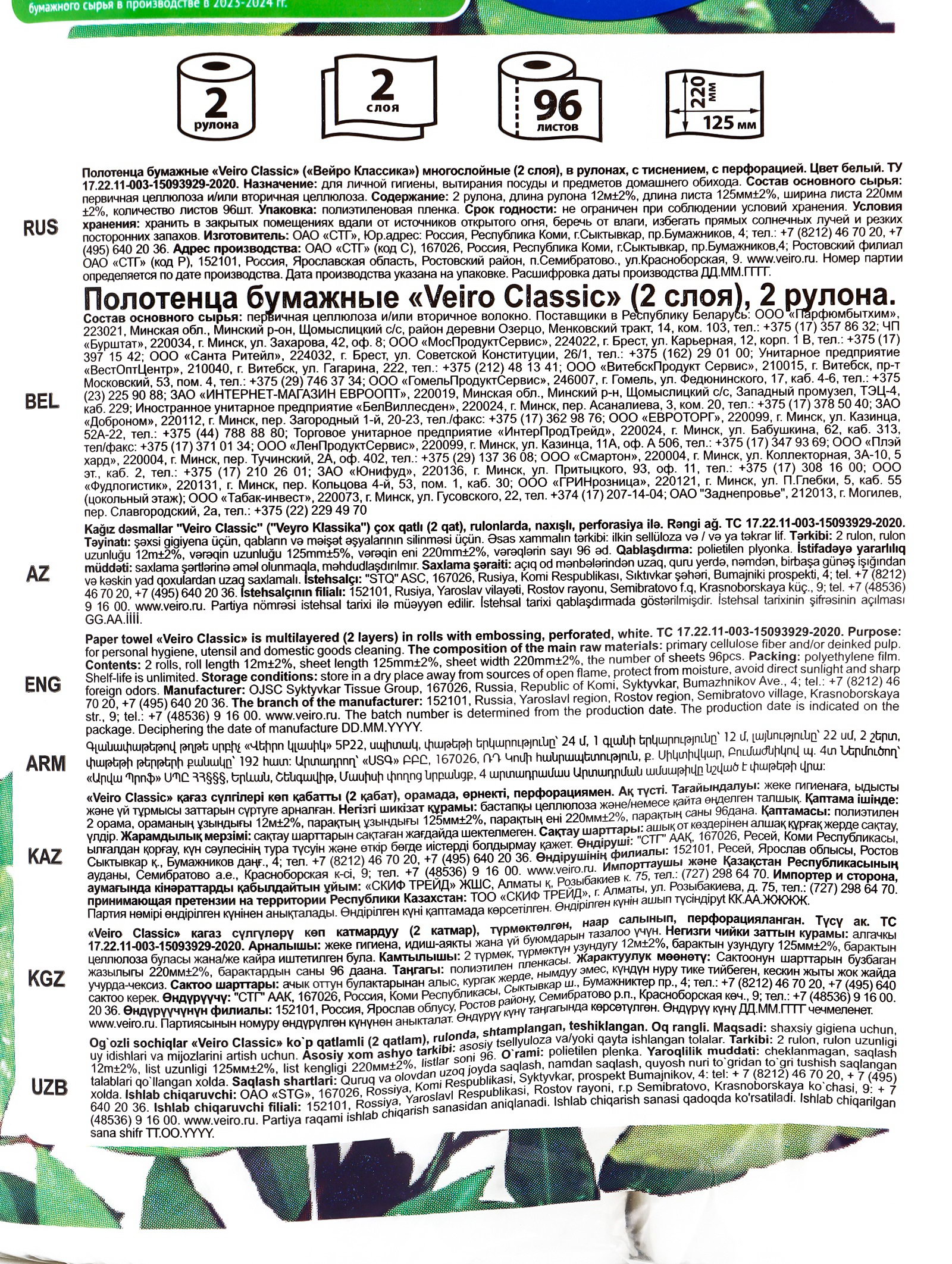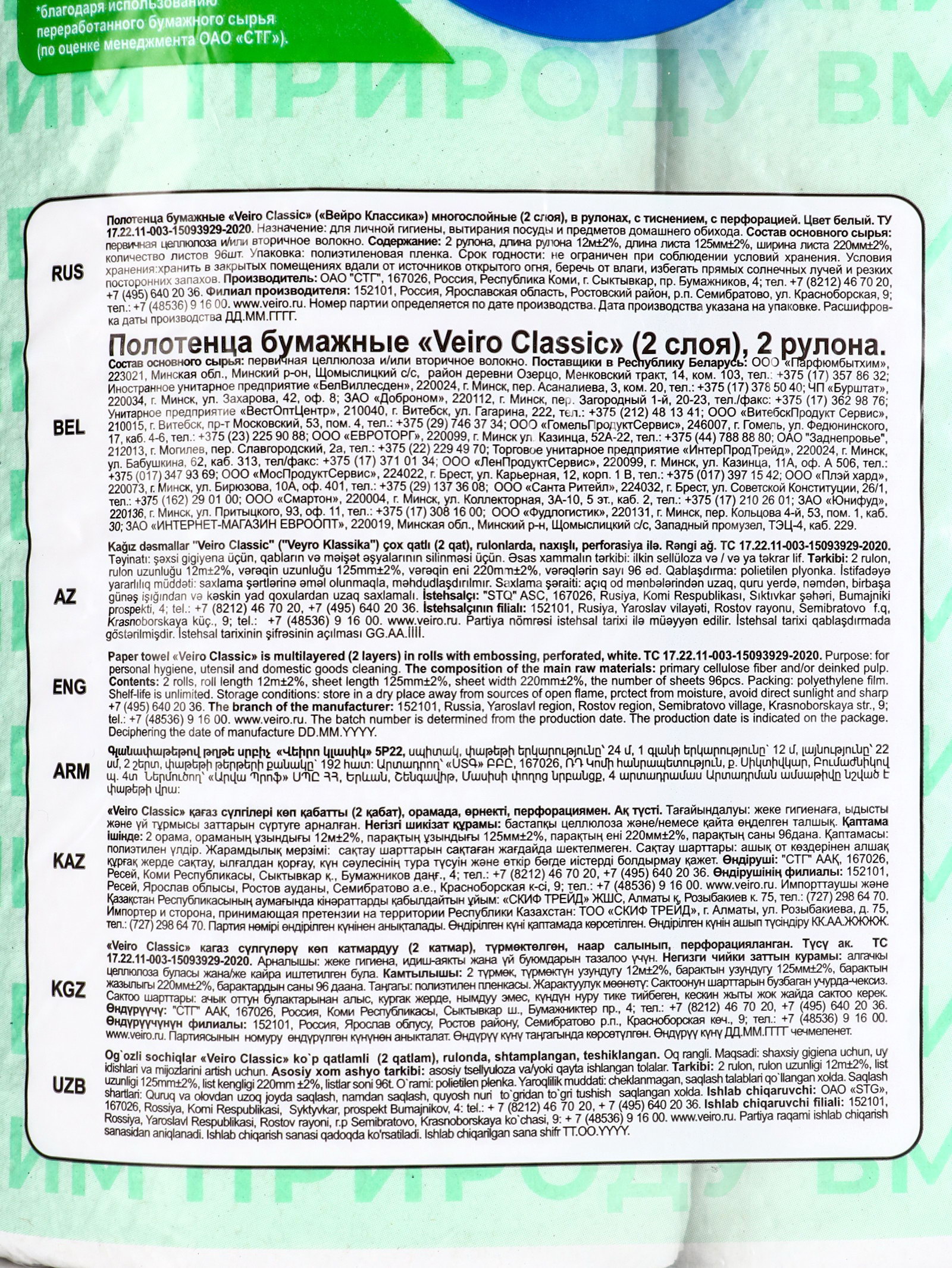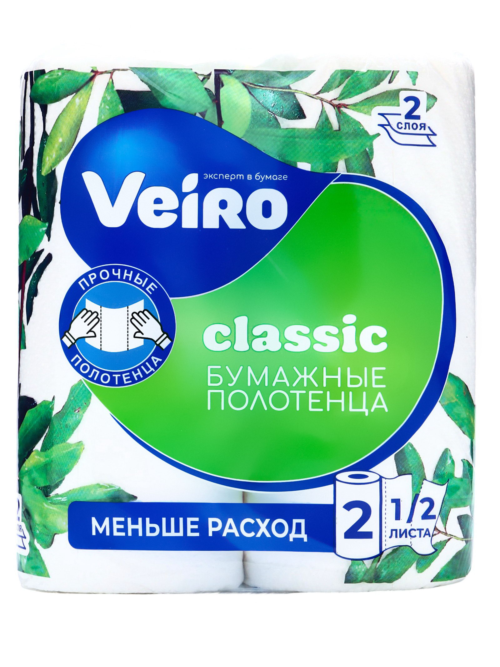 Полотенца бумажные Classic, белые, 2 слоя, 2 рулона, 10.5x20x21.5 см., VEIRO, Россия