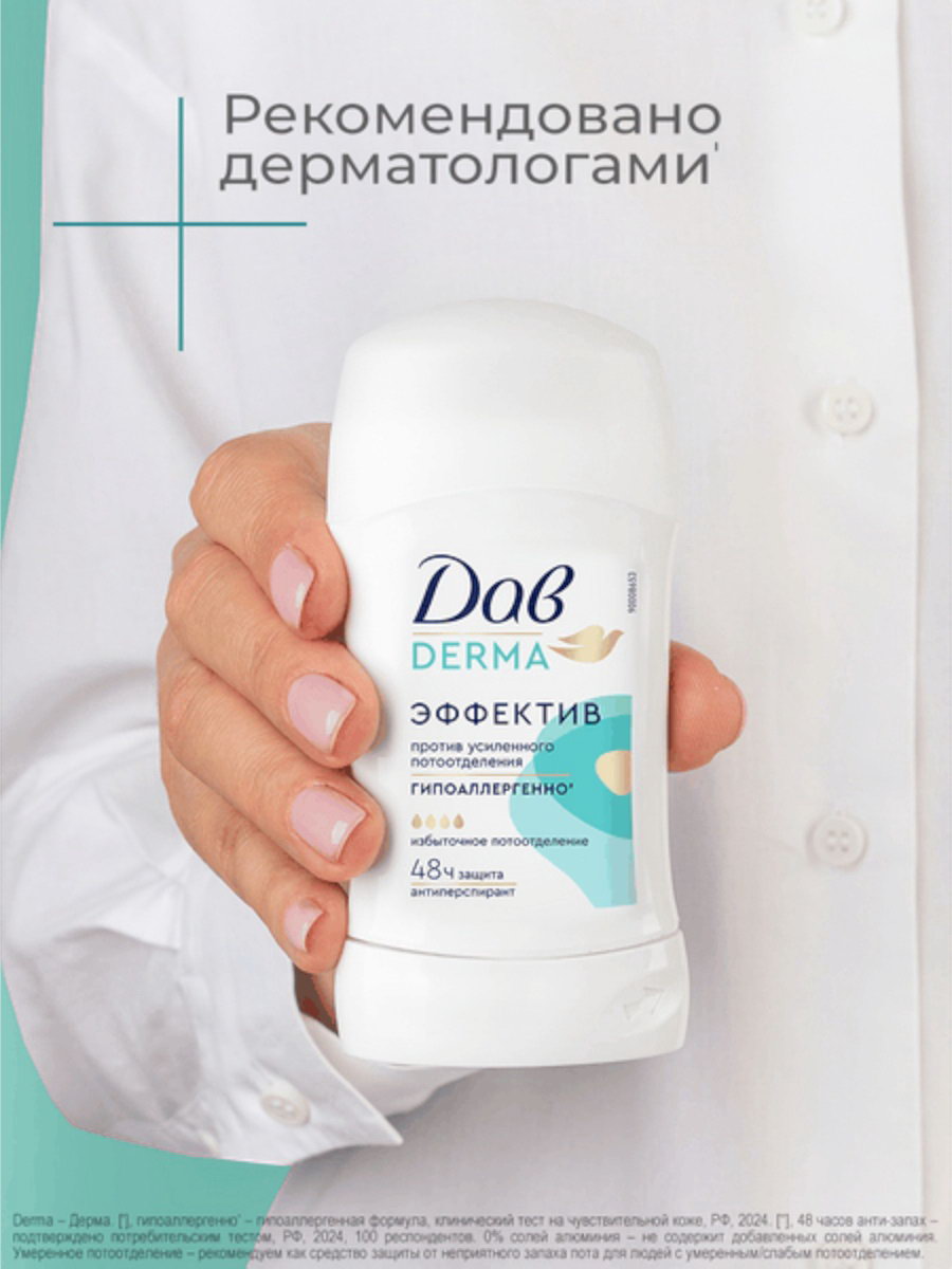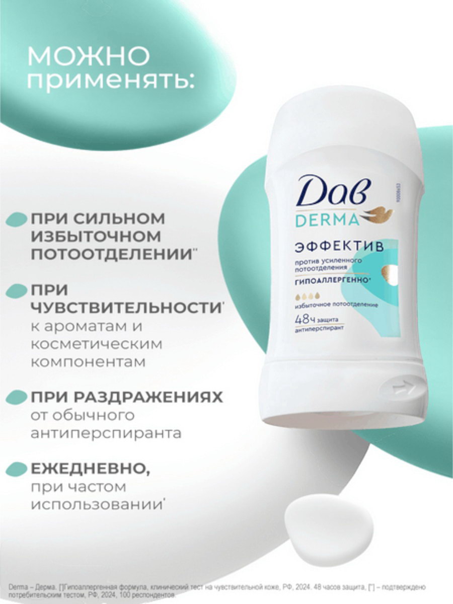 Дезодорант женский гипоаллергенный, против сильного пота, 40 мл, Дав, Россия