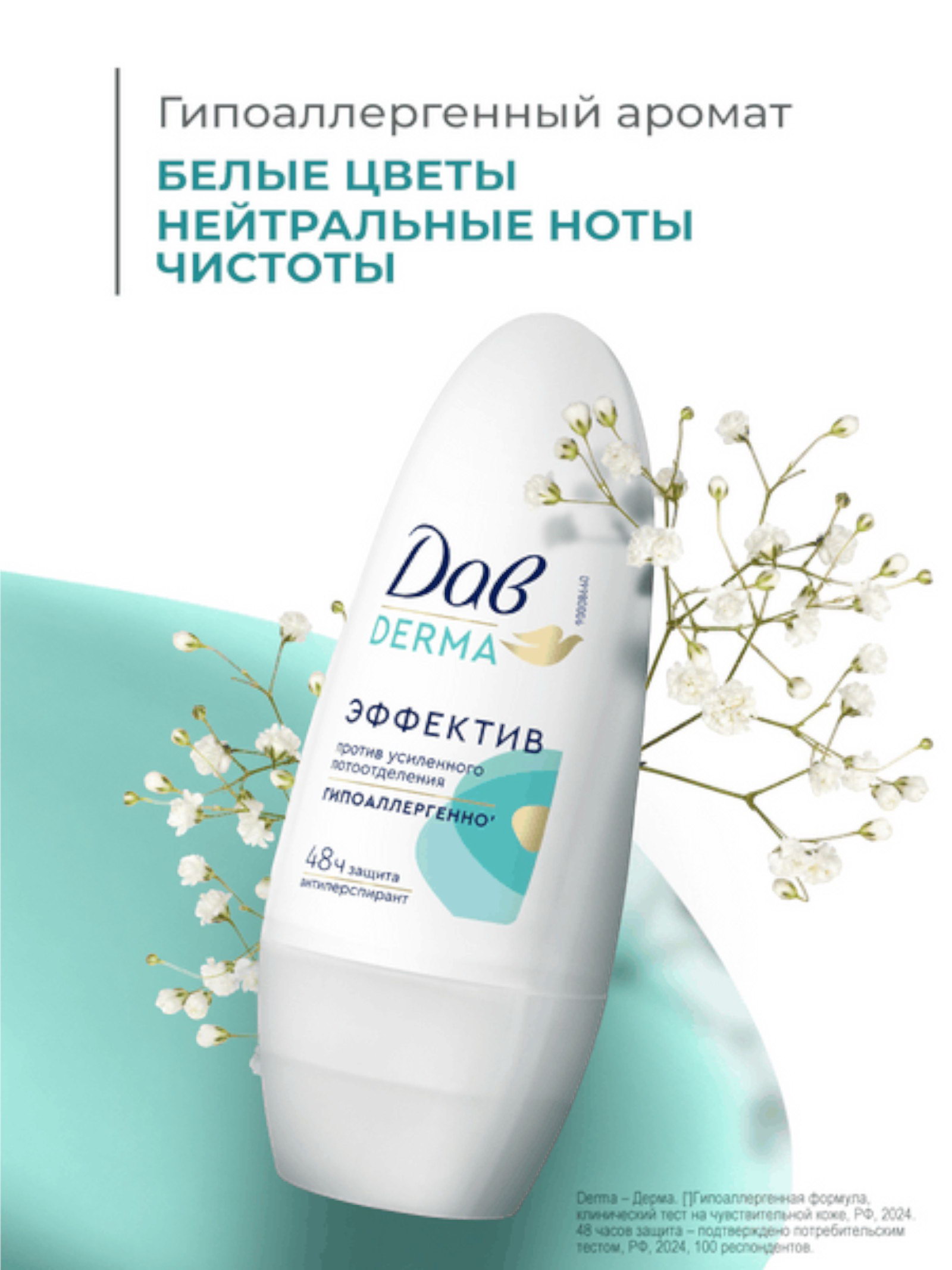 Вид: Антиперспирант, Дезодорант Размер упаковки: 4.5 x 4.5 x 12 см. tnved: 3307200000 Форма выпуска: Ролик Аромат: Свежесть Вес, г/Объём, мл: 50 Температурное ограничение: Нет Гипоаллергенный дезодорант-антиперспирант Дав Derma шариковый создан специально для женщин и девочек-подростков. Эффективное средство обеспечивает надежную защиту от запаха и от повышенного потоотделения. Формула продукта включает в себя бережные, но активные компоненты, которые успешно борются с излишней влагой и запахом пота. Интенсивный дезодорант от избыточной потливости, содержащий 0% спирта и обогащенный ниацинамидом и минералами, защищает от усиленного потоотделения на 48 часов без раздражения кожи и липкости. Гипоаллергенный состав не вызывает раздражения, что делает его отличным выбором для чувствительной кожи. Без липкости через 48 часов – подтверждено потребительским тестом. 0% спирта – не содержит этилового спирта. Способ применения: проведите шариком по чистой и сухой коже подмышек. Состав: Aqua, Aluminum Chlorohydrate, Glycerin, Helianthus Annuus Seed Oil, Steareth-2, Niacinamide, Parfum, Steareth-20, Disodium EDTA, Pentaerythrityl Tetra-di-t-butyl Hydroxyhydrocinnamate, Caprylic/Capric Triglyceride, Hydrated Silica, Gelatin Crosspolymer, Sodium Benzoate, Cellulose Gum. | ||