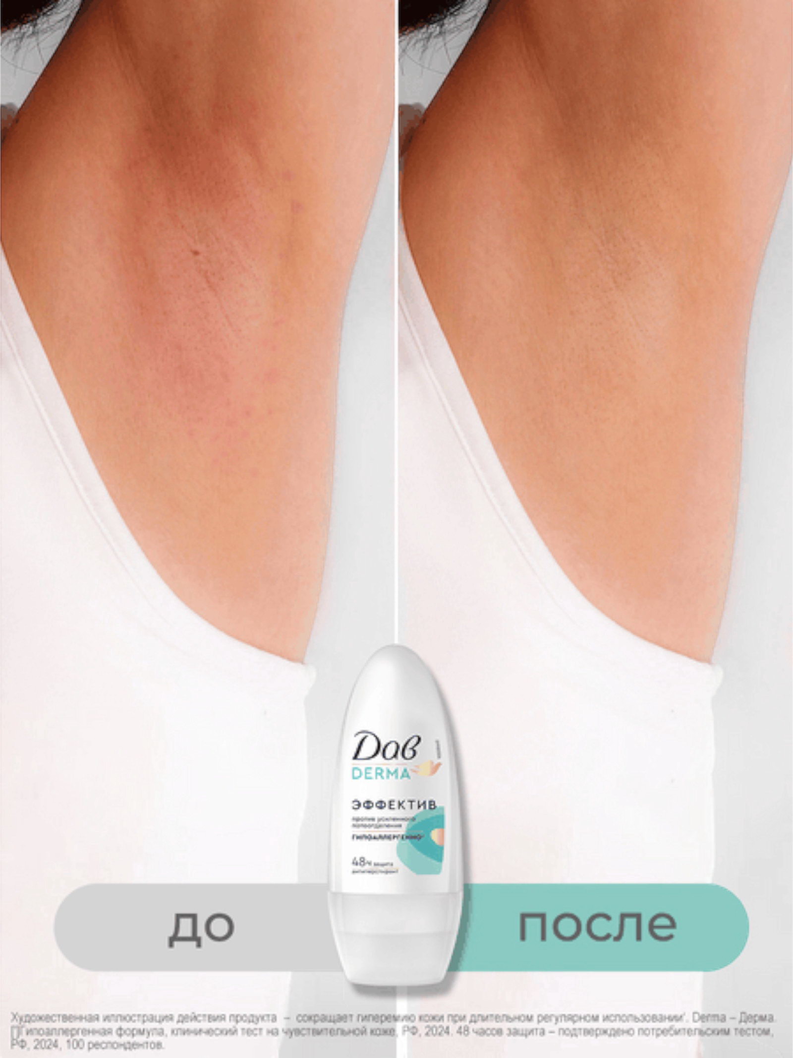 Дезодорант женский гипоаллергенный, против сильного пота, 50 мл, Дав, Россия