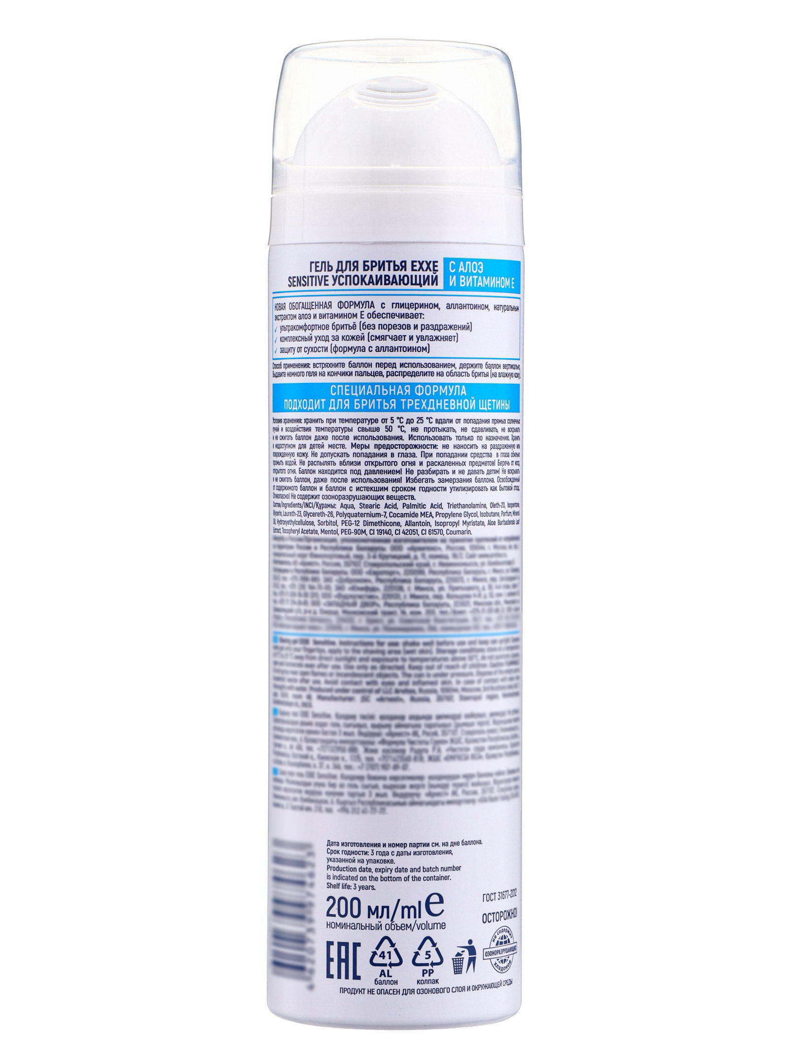 Гель для бритья Sensitive, для чувствительной кожи, 200 мл, Exxe, Россия