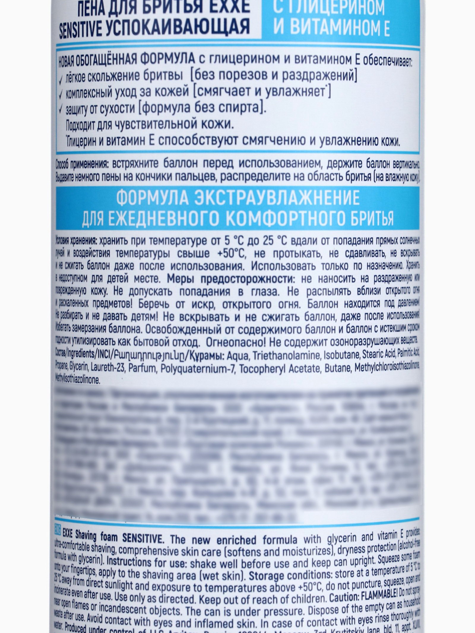 Пена для бритья Sensitive, для чувствительной кожи, 200 мл, 200 мл., Exxe, Россия