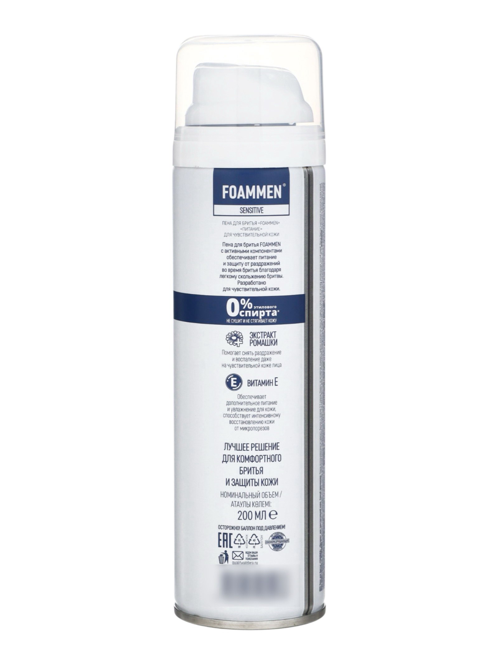 Пена для бритья "Питание" для чувствительной кожи, 200 мл, Foammen, Россия