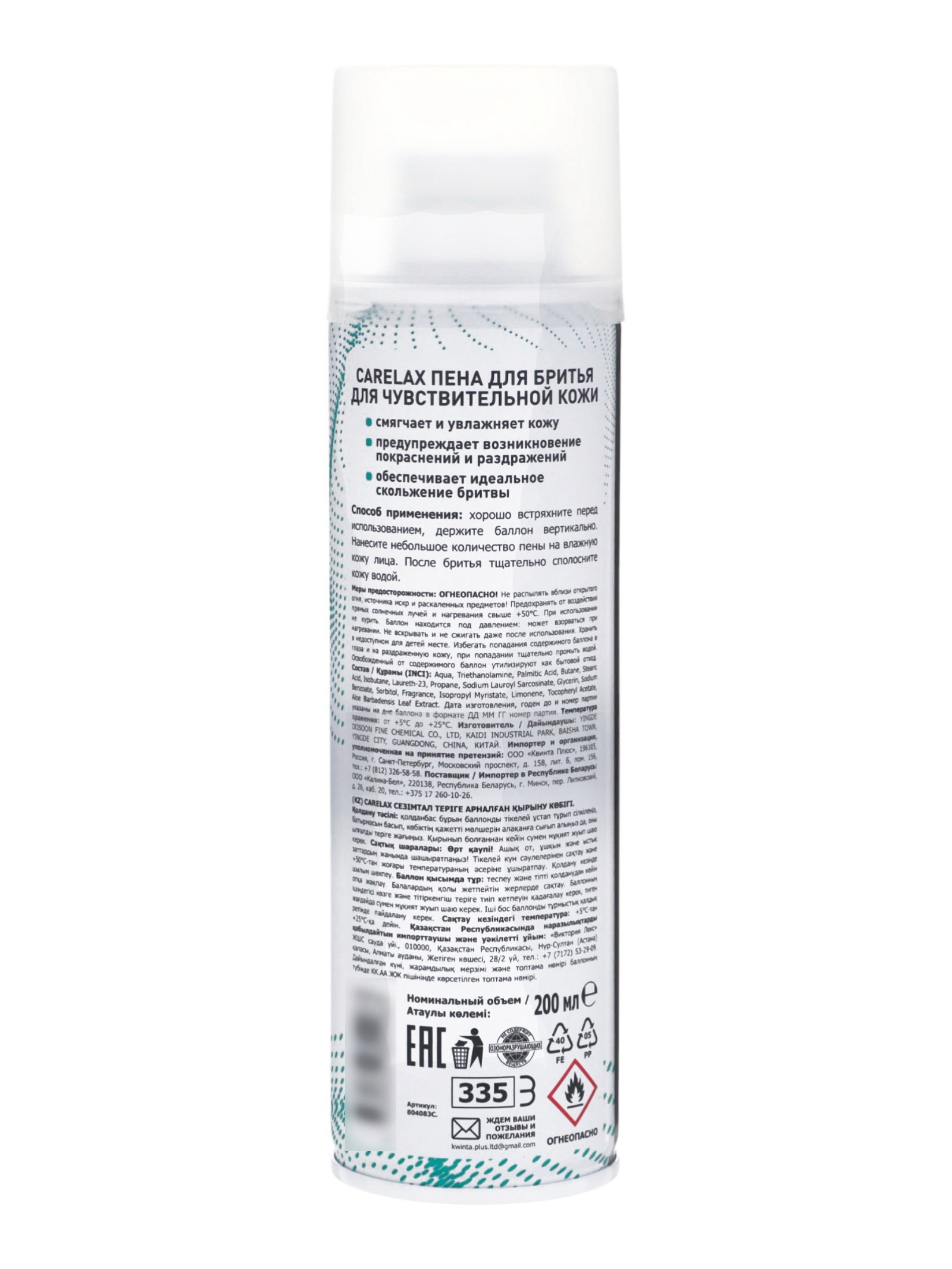 Пена для бритья для чувствительной кожи, 200 мл, Carelax, Китай