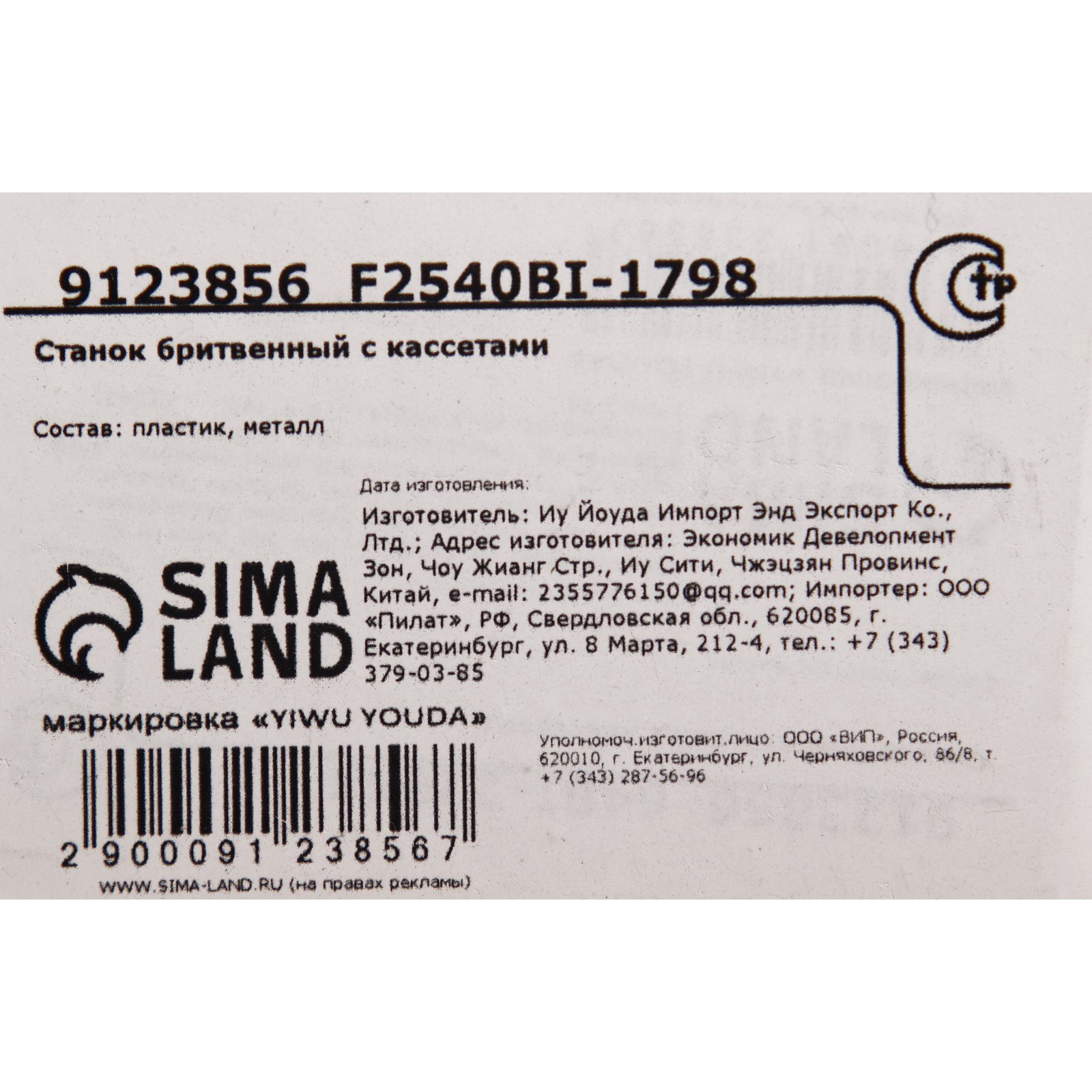 Станок бритвенный, 4 сменных кассеты, 9x20x4.5 см., Мой выбор, Китай