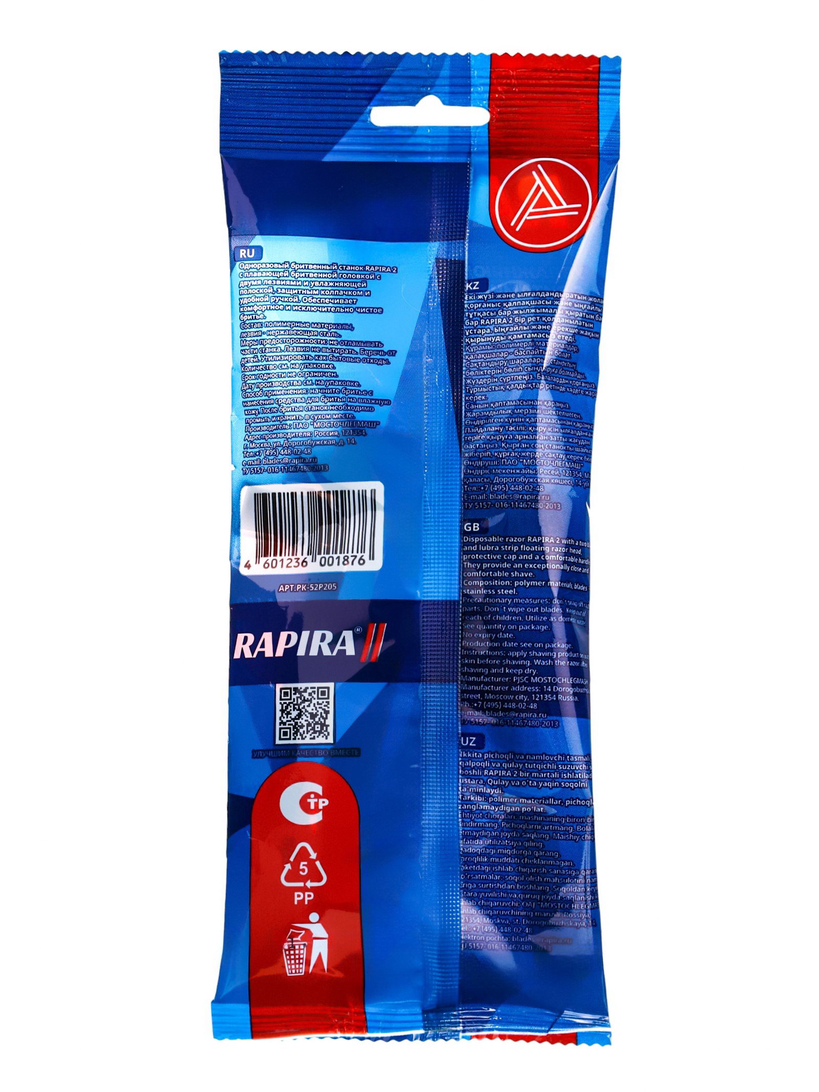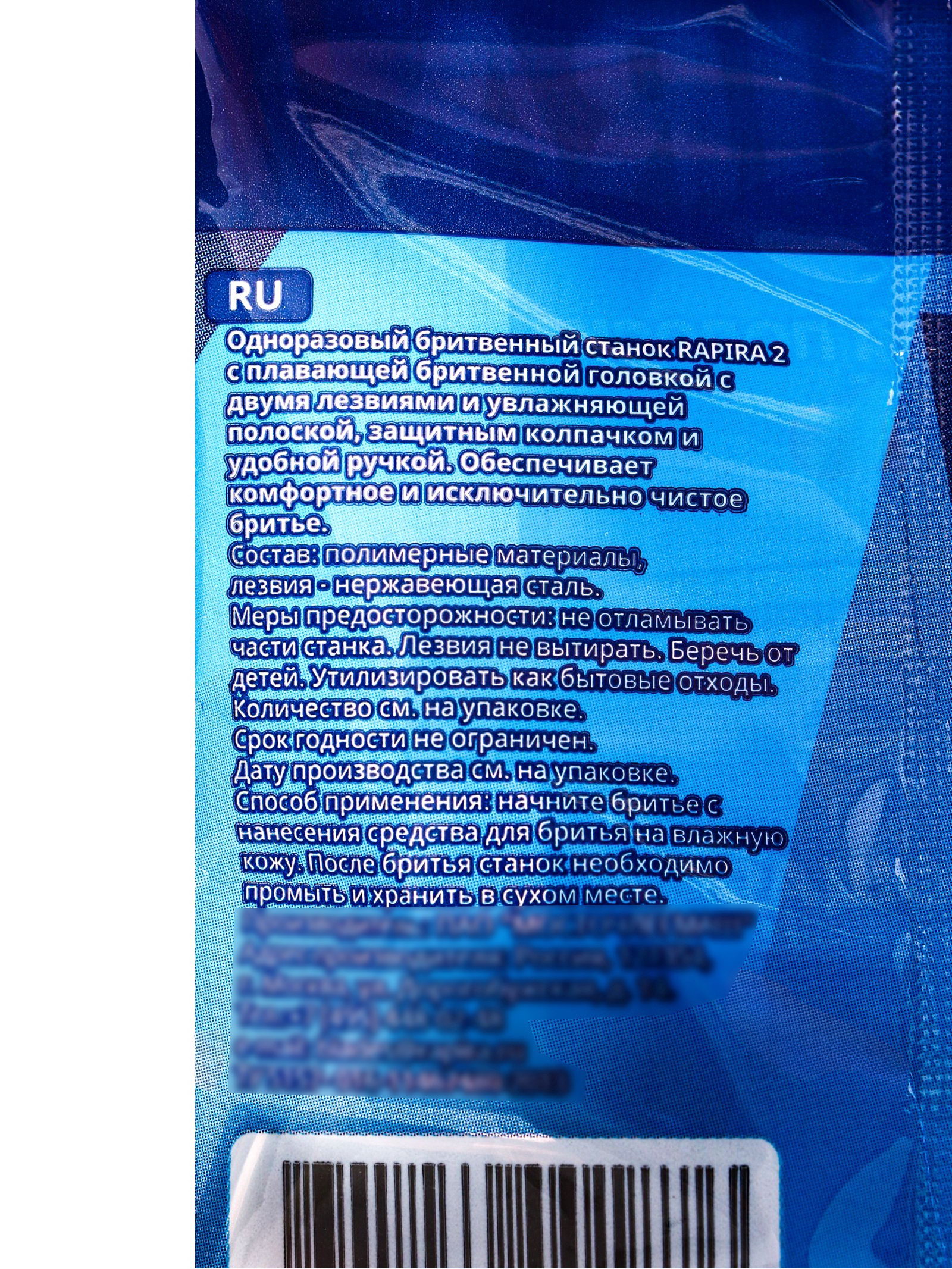 Одноразовый бритвенный станок 2, 5 штук, Rapira, Россия