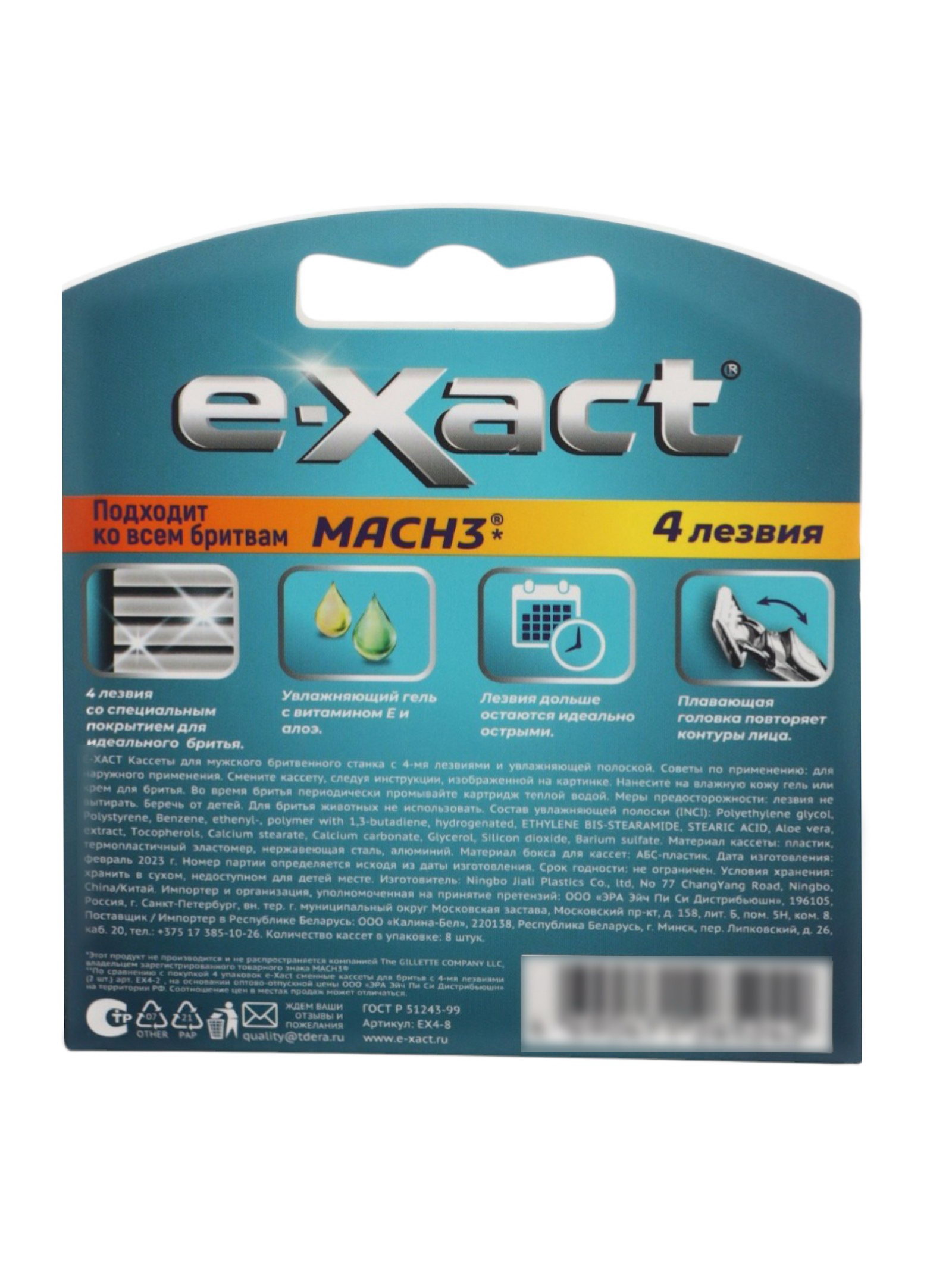 Кассеты мужские 4 лезвия, 8 шт., E-Xact, Китай